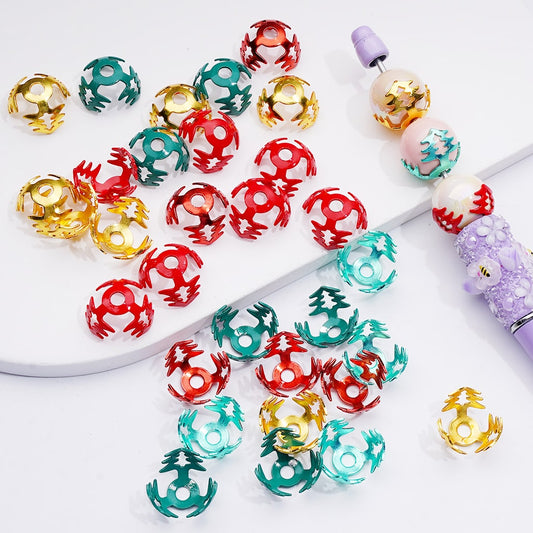 Cute Metal Christmas Tree Design Bead Cage Cap, 16MM