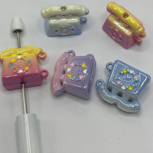かわいい固定電話の古いスタイル ヴィンテージ アンティーク レトロ チャーム アクリル ビーズ マルチカラー 25*29mm ランダム ミックス