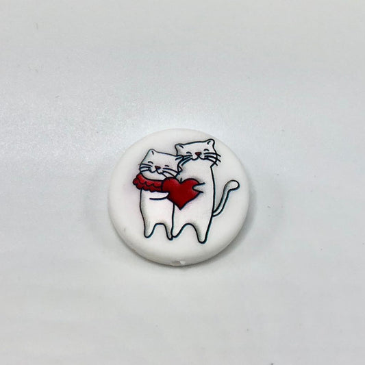 愛し合うかわいい猫たちが抱き合うハートのシリコン製フォーカルビーズ