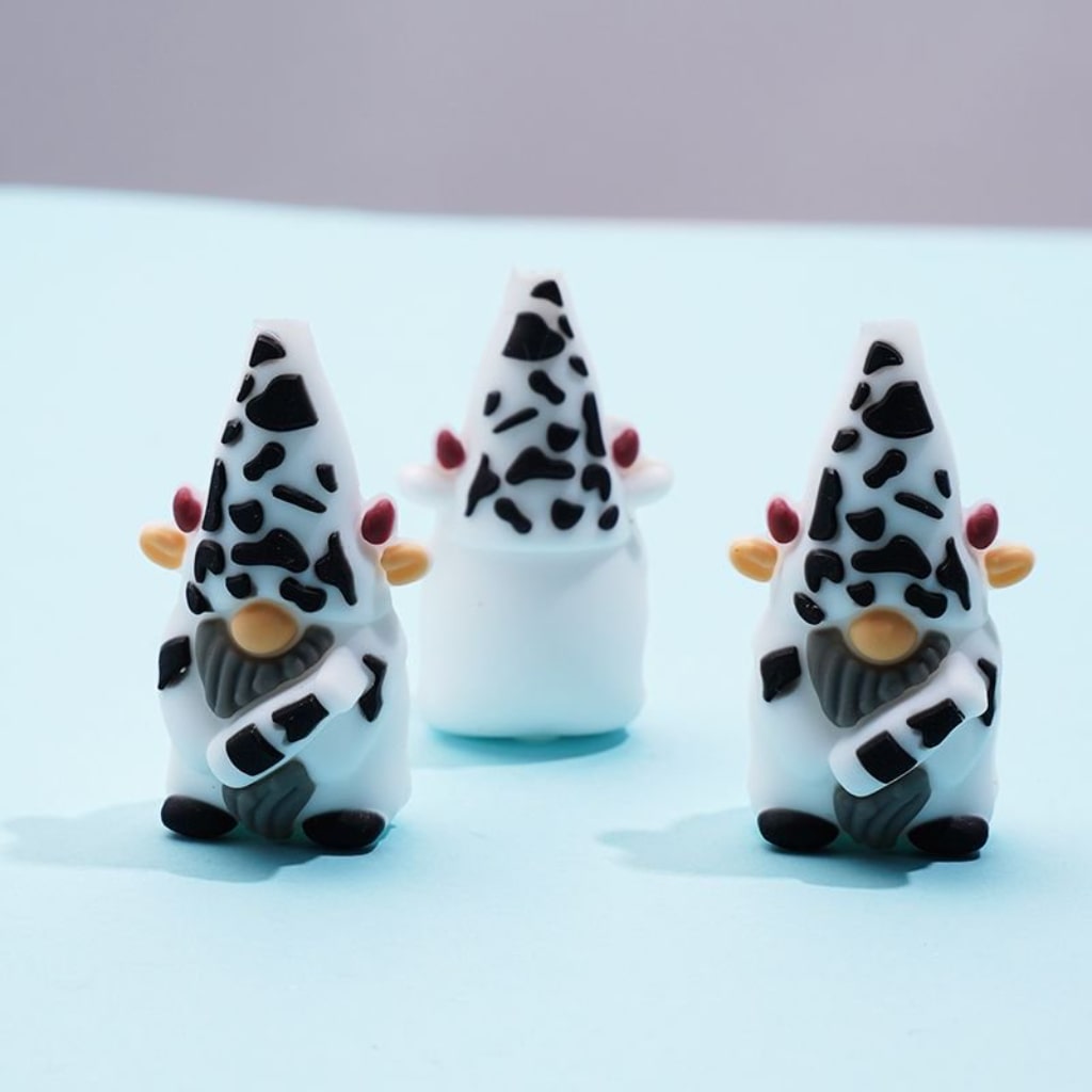 牛柄の帽子をかぶった3Dのかわいいノーム、シリコン製フォーカルビーズ