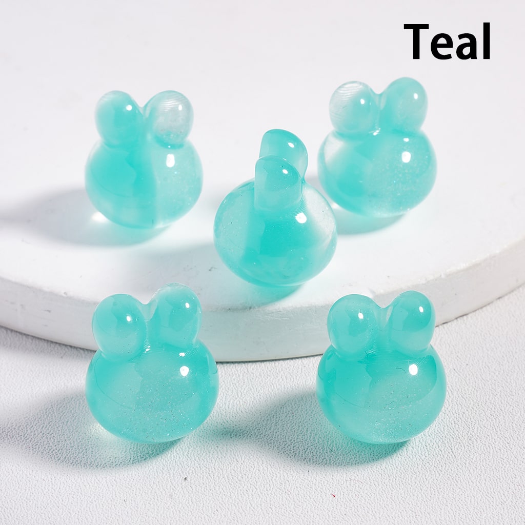 Acrylic Beads Color Changing Cat Eye Style Rabbit Head Glitter Inside, Random Mix, Height 18MM