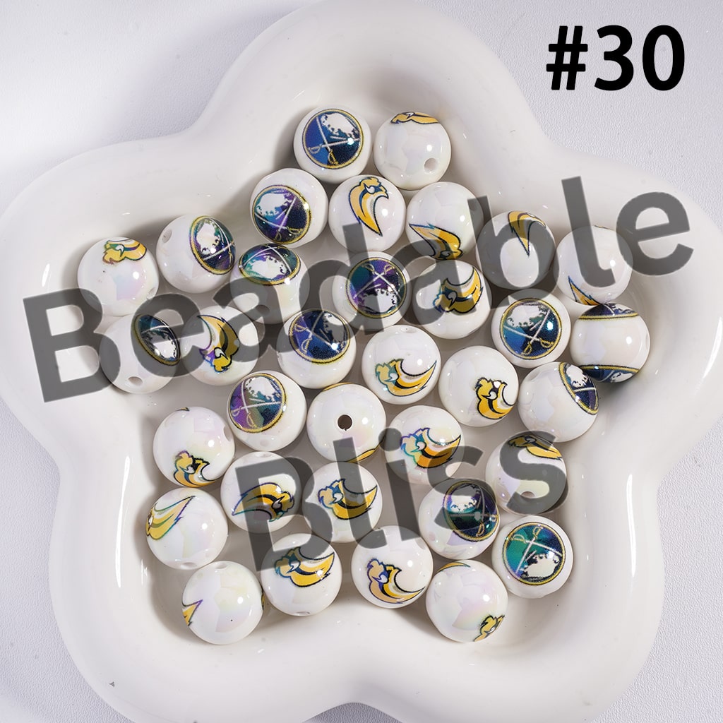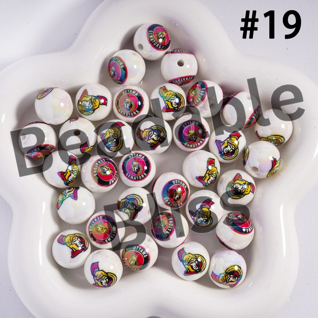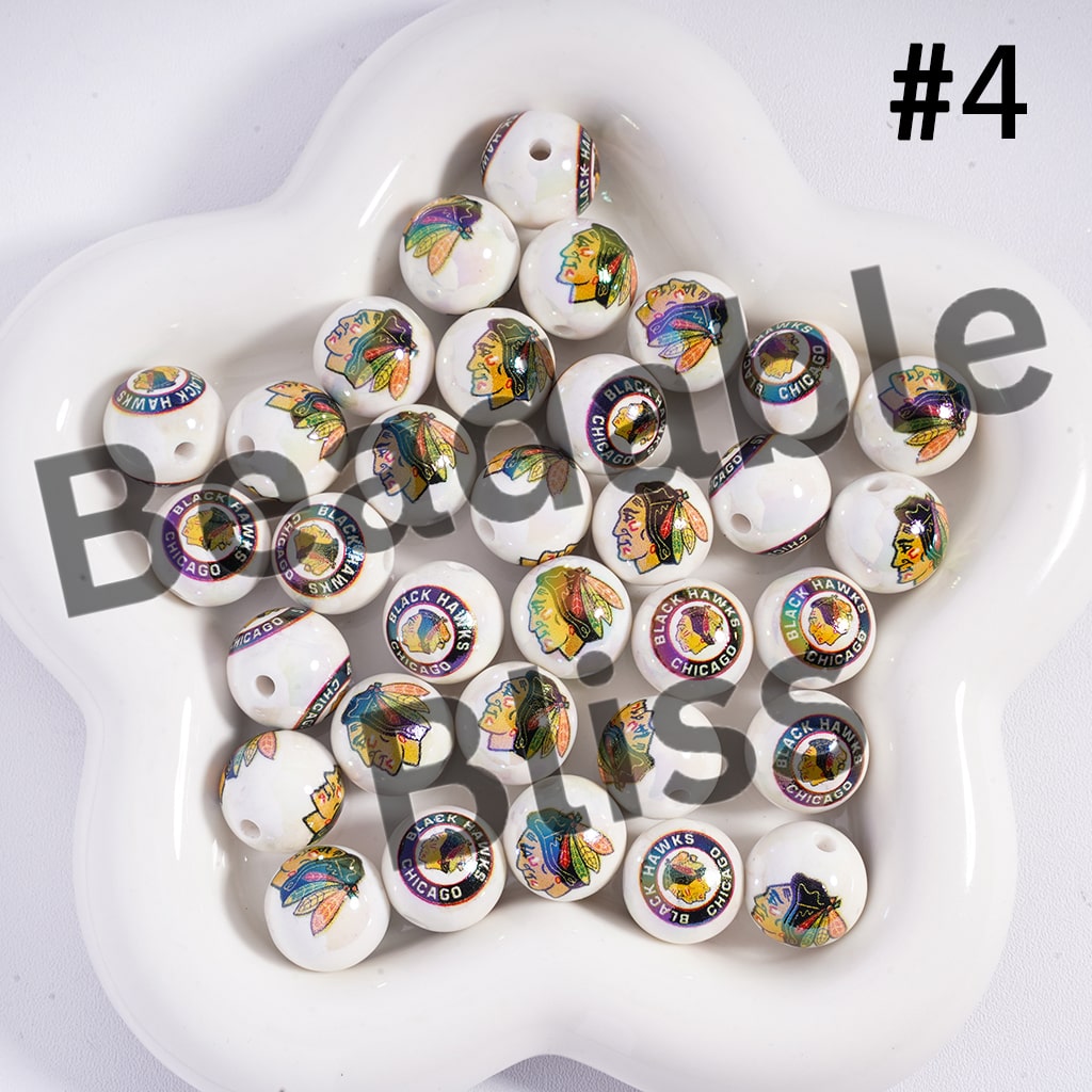 Acrylic Beads for Bracelets | Round with UV Coating Ice Hockey Team Pattern, 16MM