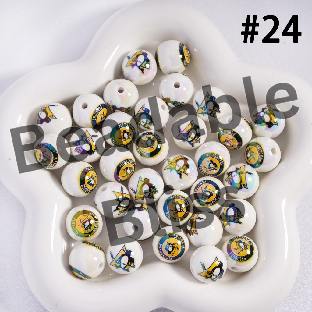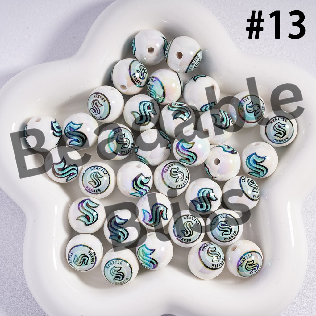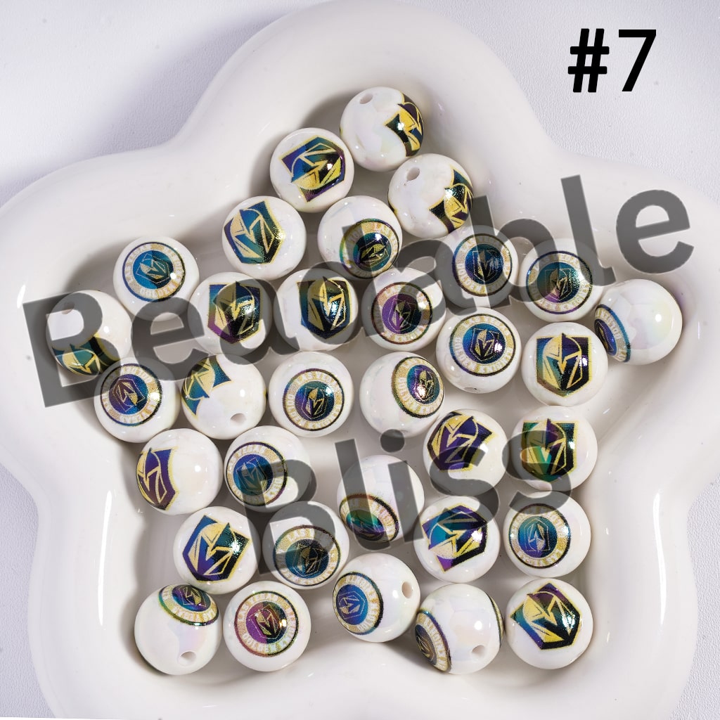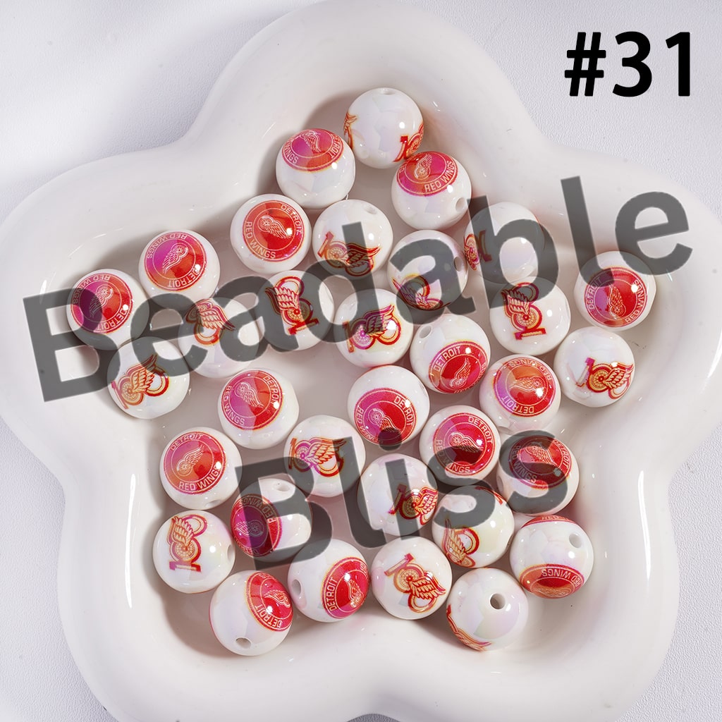 Acrylic Beads for Bracelets | Round with UV Coating Ice Hockey Team Pattern, 16MM