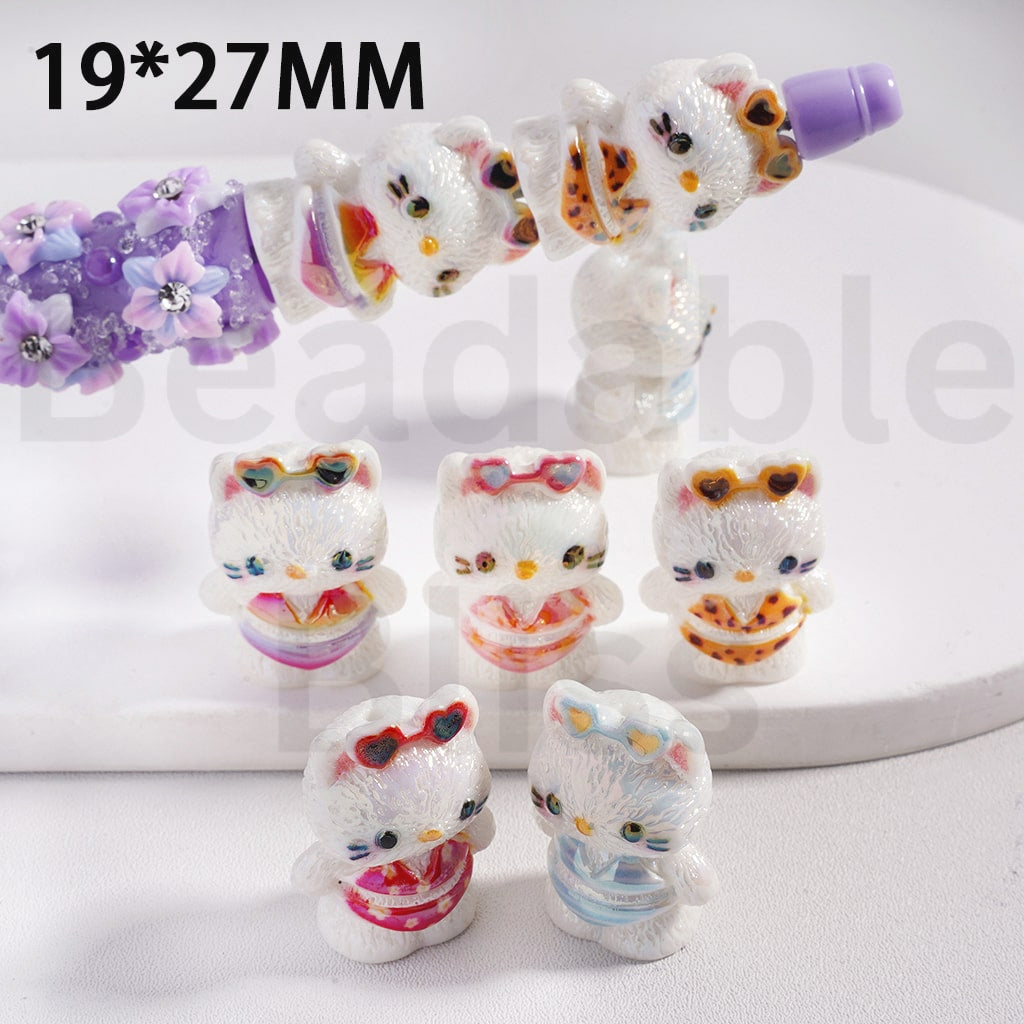 Acrylic Beads UV Coating Cute Hello Kitt in Swimming Suit with Sun Glasses, 19*27MM, Random Mix