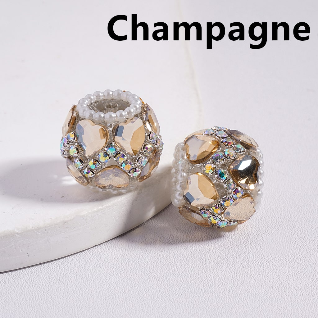 Acrylic Beads with Heart-Shaped Rhinestones, Wave-Shaped AB Rhinestone and White Pearl Chains, 20MM, Multi-Color