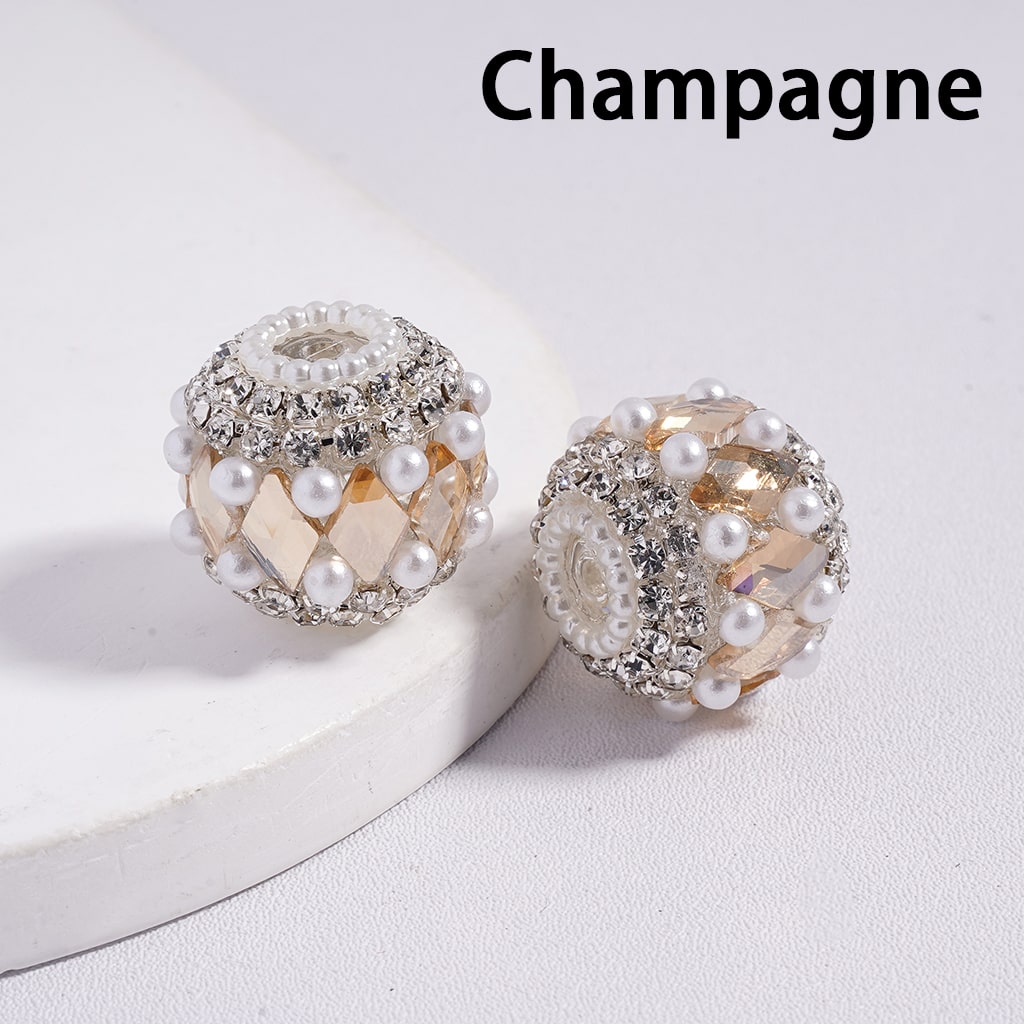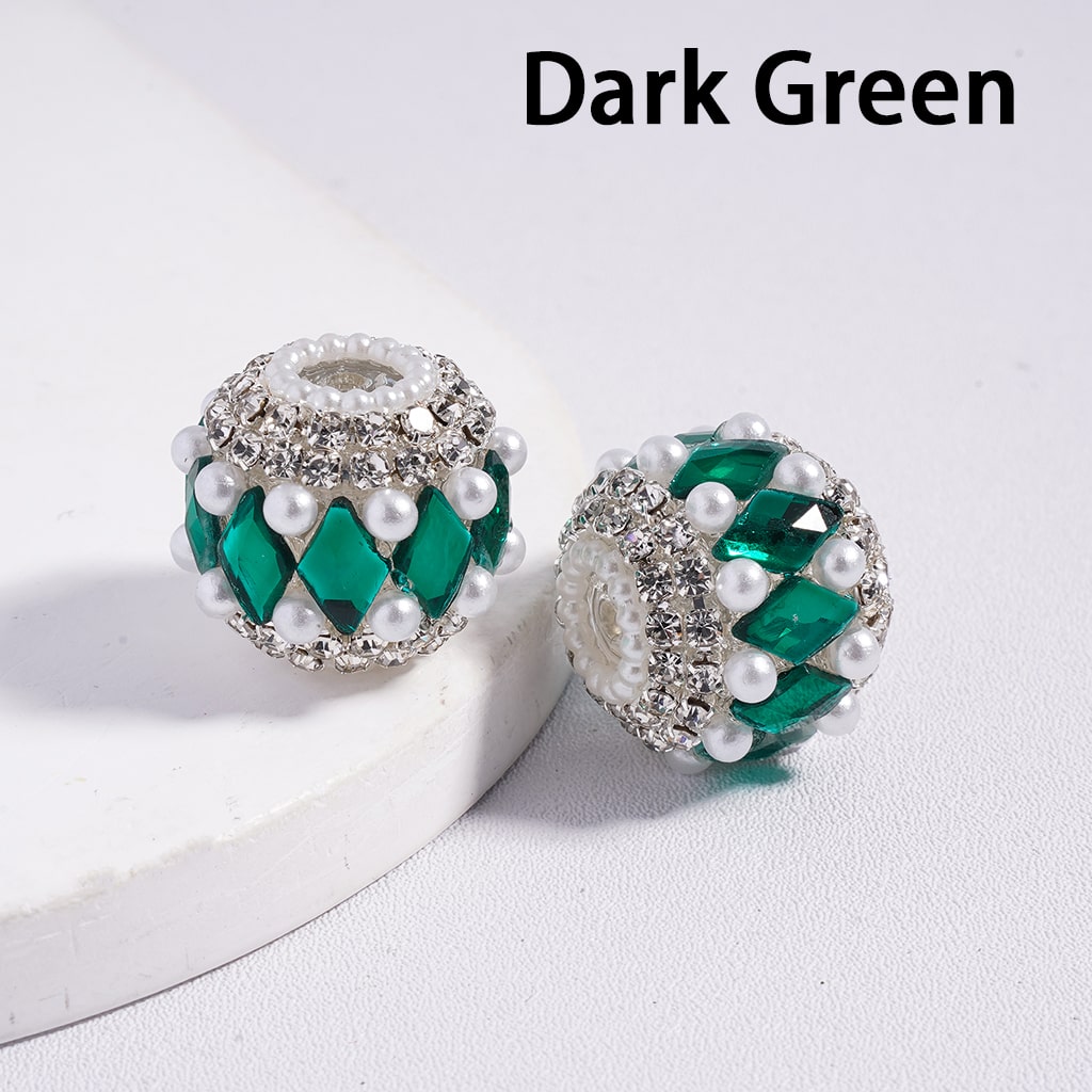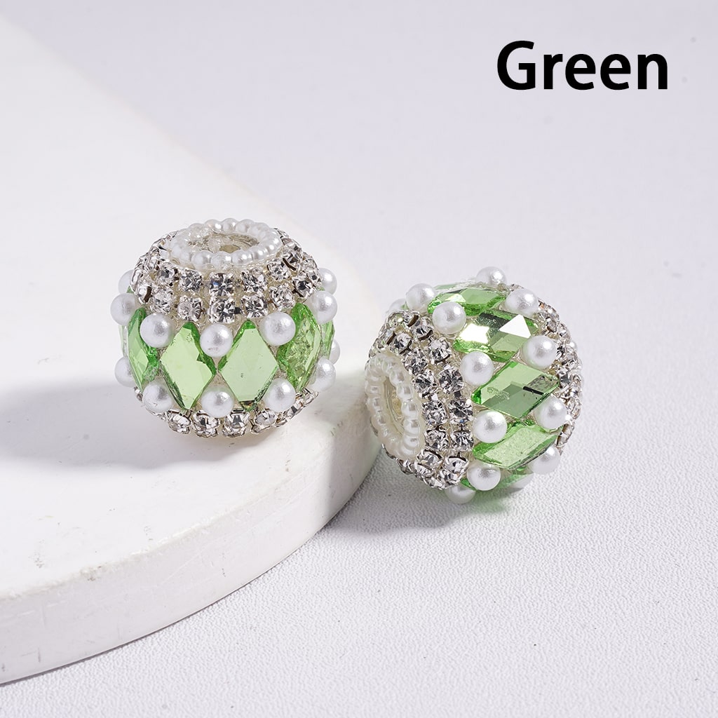 Acrylic Beads with Various Colors Rhombus and Clear Rhinestone, with White Pearl Chains, 20MM, Random Mix