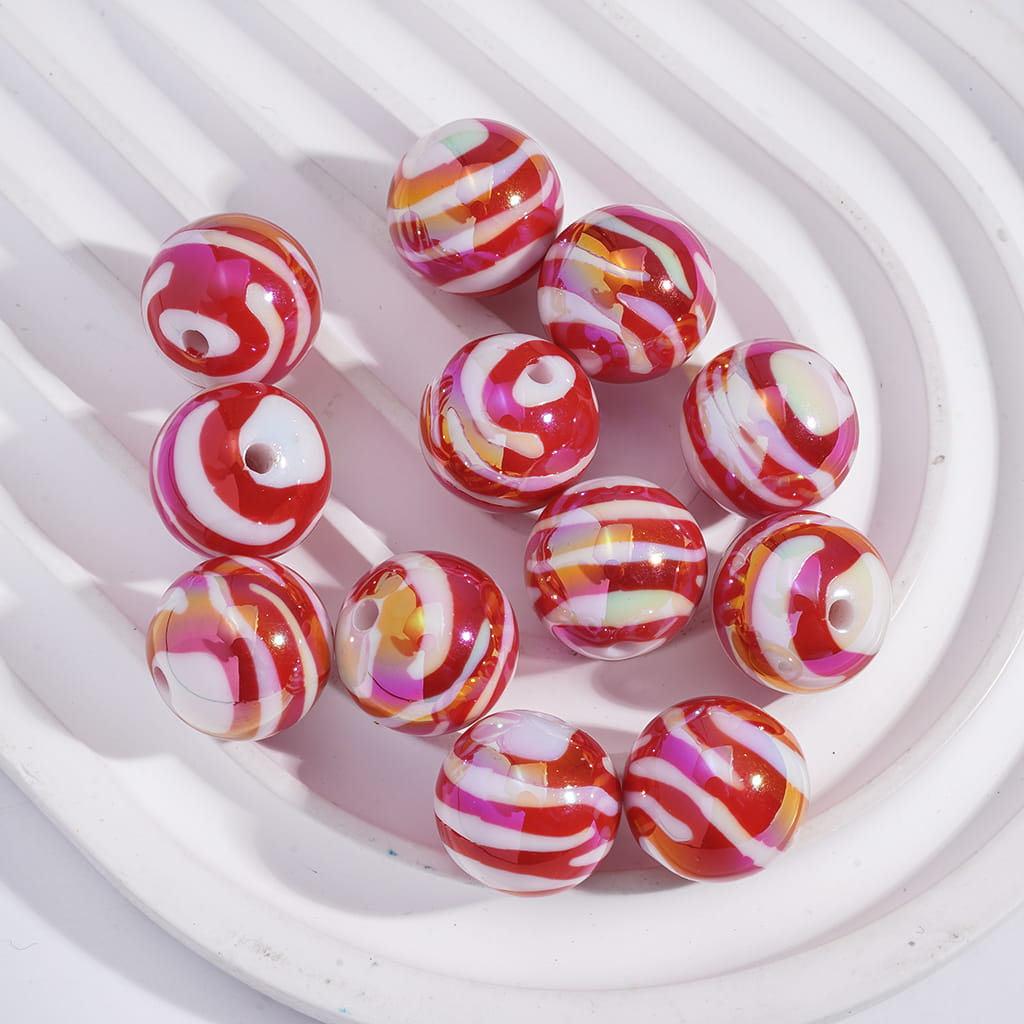白と赤、黒、ピンクのストライプのアクリルビーズ