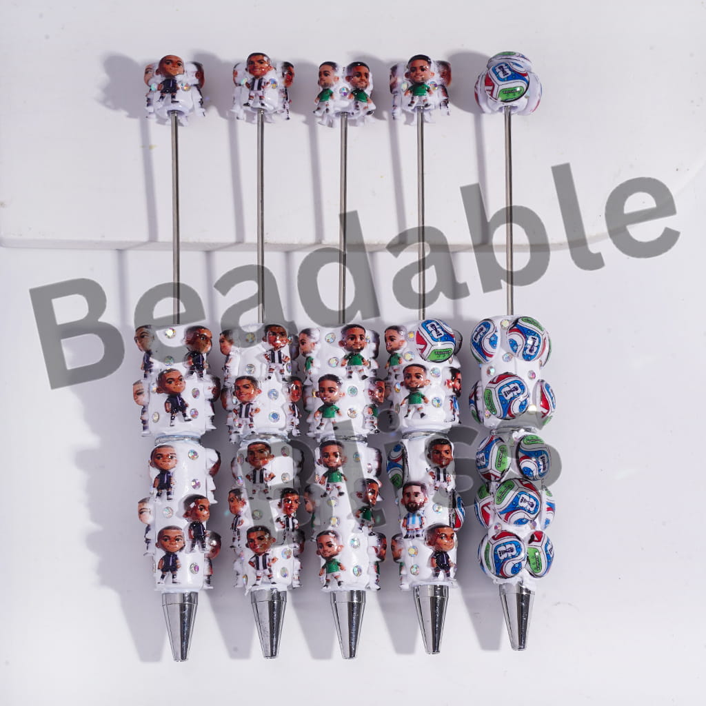 Beadable Clay Pens with Football Soccer Player Series and AB Rhinestones