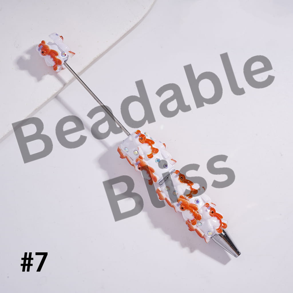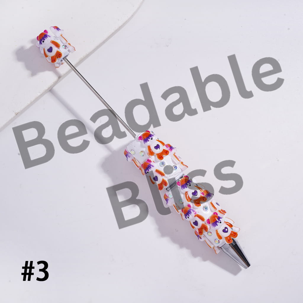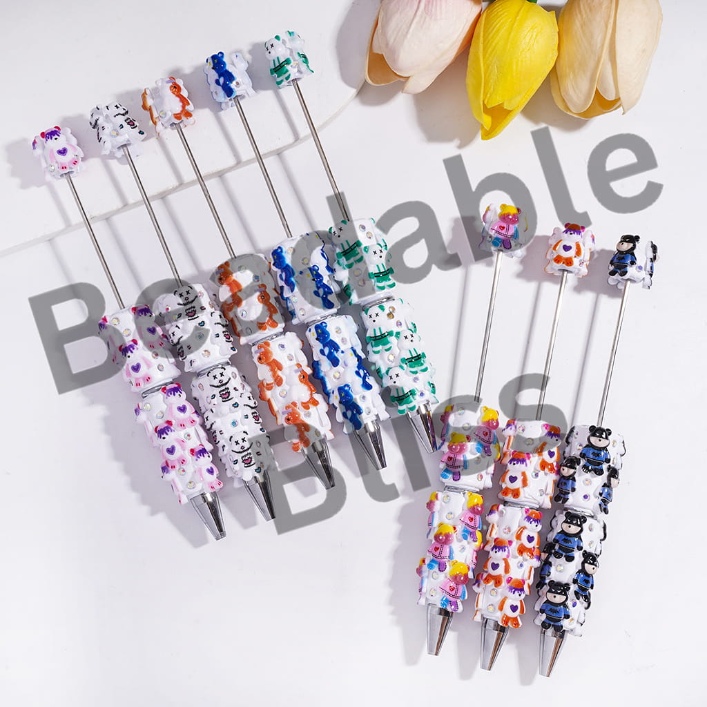 Beadable Clay Pens with Violent Bear, AB Rhinestones and White Pearl