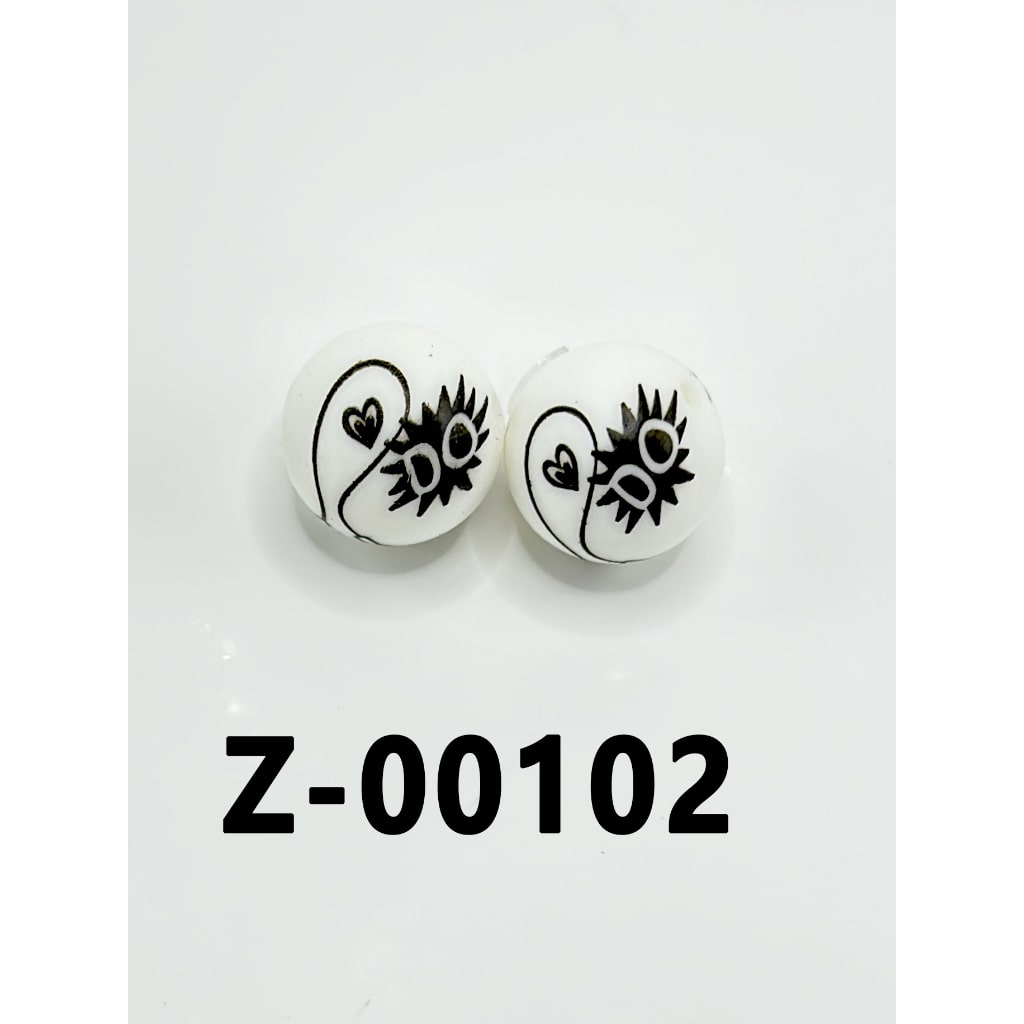 ブラックウニハートデザインラウンドプリントシリコンビーズ15mm、番号Z-00102