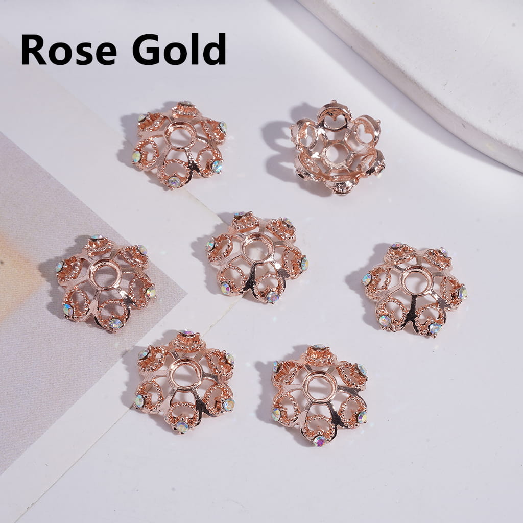 キラキラ輝く蓮の花の形をしたシルバーメタルビーズキャップケージ、ABラインストーン付き、約19MM(16MM、20MMのビーズに使用できます)