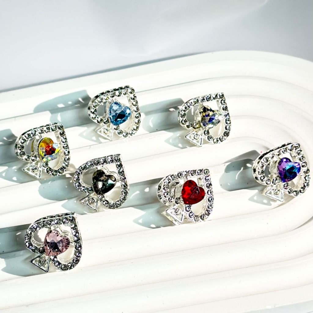 キラキラ輝くシルバー合金スペード、クリアラインストーン、カラフルなハート、ランダムミックス、約20×19mm