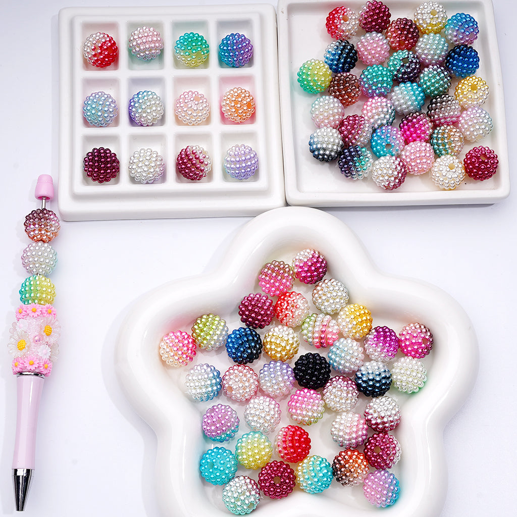 ダブルカラーテクスチャーマルチカラーバンピーベイベリーアクリルビーズ、分割可能、15mm、DK、ビーズペンにフィット