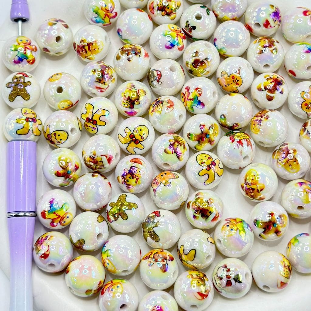 クリスマスジンジャーブレッドクッキーアクリルビーズランダムミックス、16mm、ランダムミックス