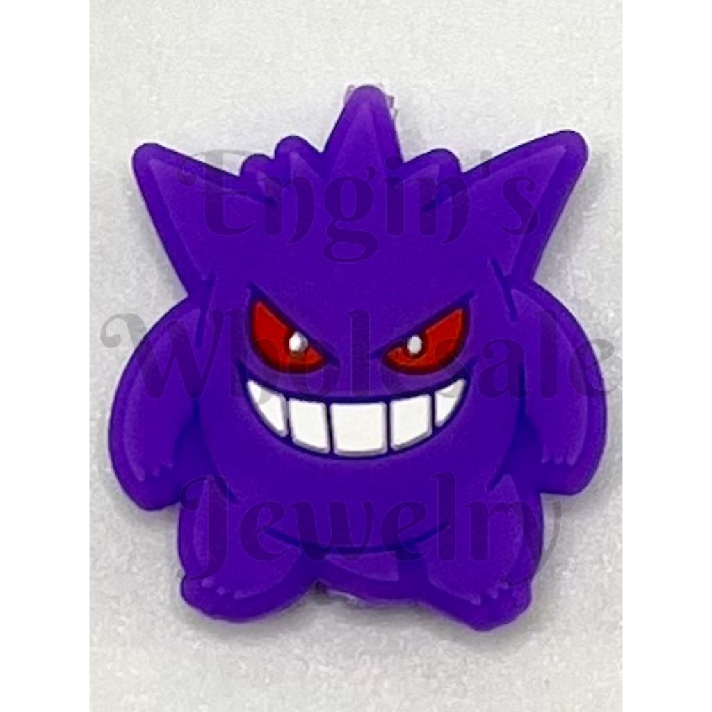 - このかわいいシリコン製フォーカルビーズには、人気のポケモンキャラクターが鮮やかな紫色で描かれています。