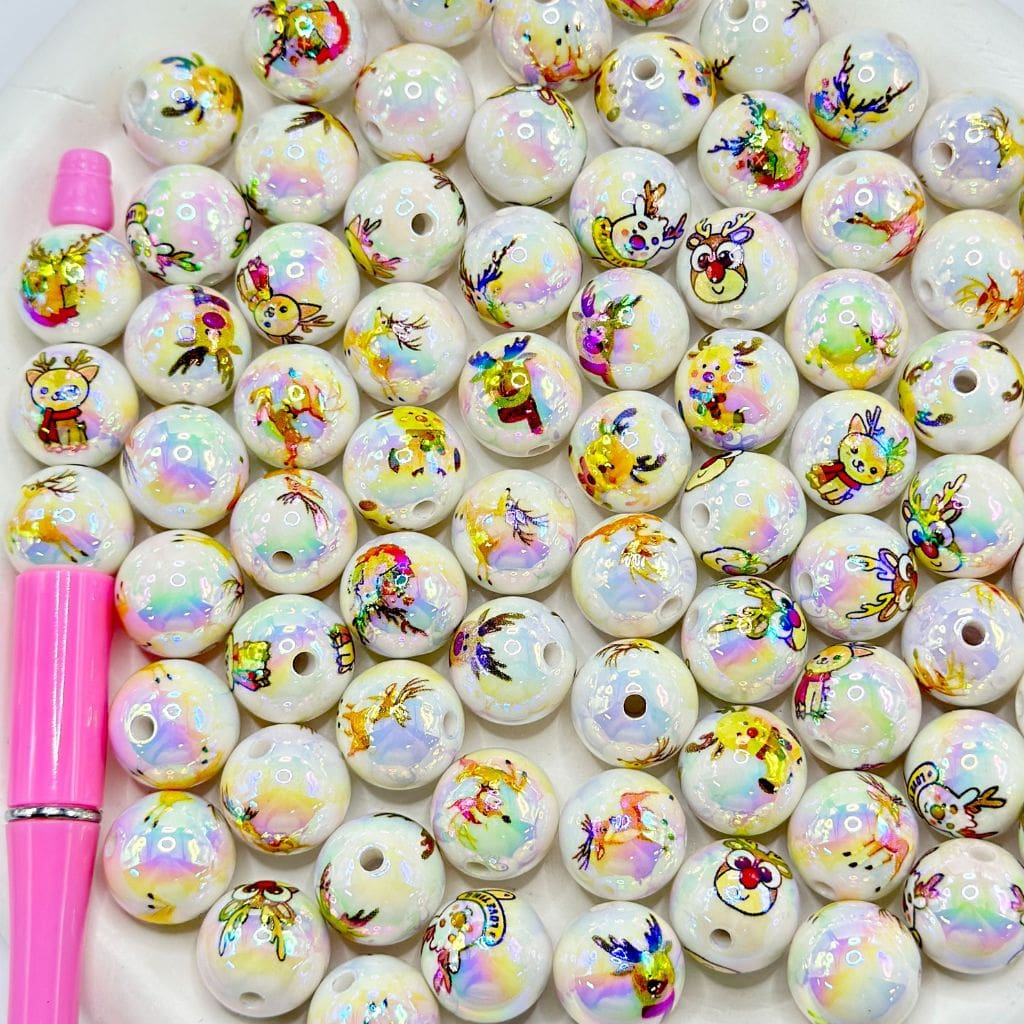 かわいいクリスマストナカイ丸型アクリルビーズランダムミックス、16mm