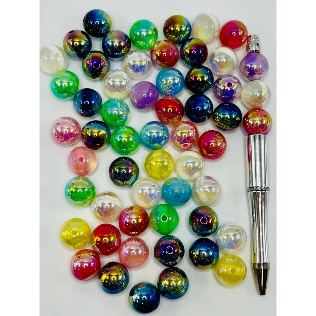 キャットアイスタイル 光沢アクリルビーズ 中央にストライプ、UV仕上げ、16 mm、ランダムミックス、ALX