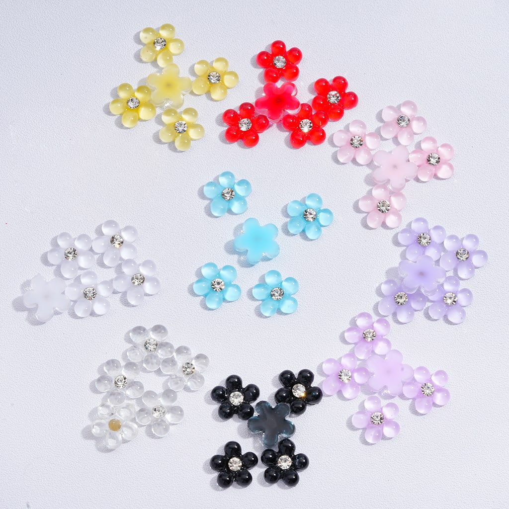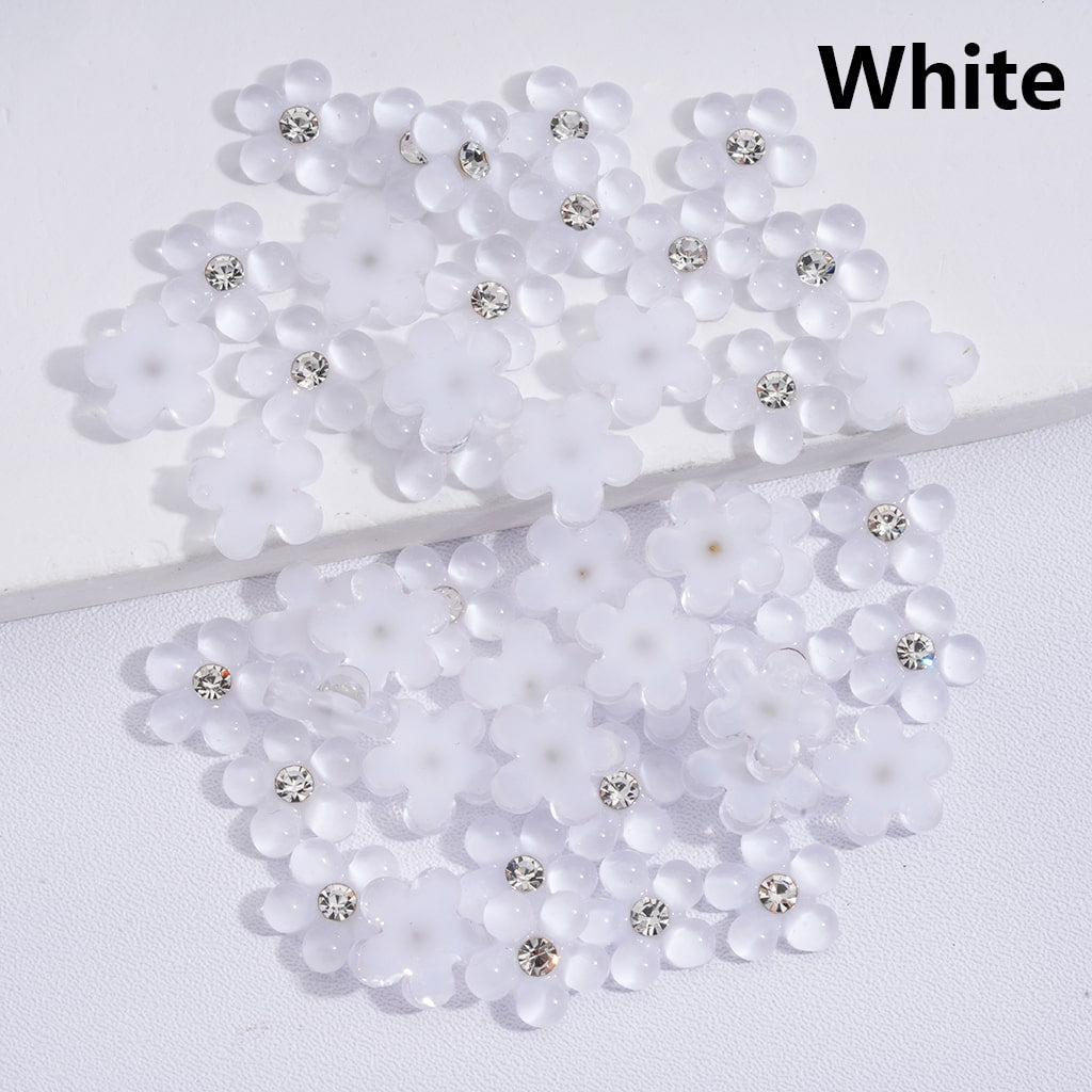 Charm Jewelry Accessories Mini Cute Pearl Flowers with Clear Rhinestones Solid Color 10MM