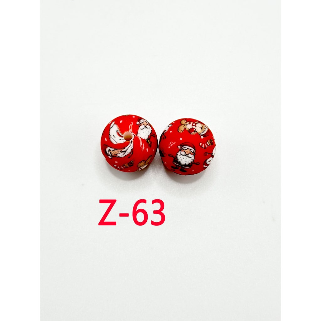 クリスマス柄 丸型プリントシリコンビーズ 15mm 番号 Z-63