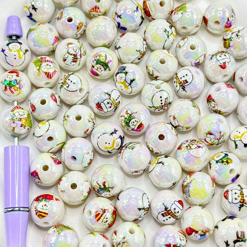 クリスマスサンタハットスノーマンラウンドアクリルビーズ、ランダムミックス、16mm