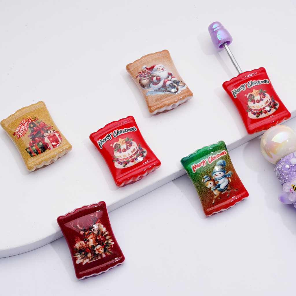 Christmas Series Candy Bag Acrylic Beads, 26*20MM, Random Mix