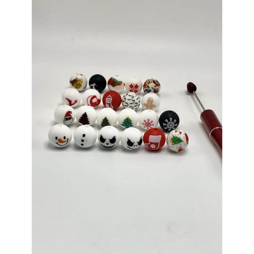 - クリスマス プリント シリコン ビーズ 15 mm ランダム ミックスには、クリスマス ツリー、リース、雪だるま、装飾品、キャンディ ケイン、雪の結晶など、楽しいお祝いのプリントが豊富に揃っています。