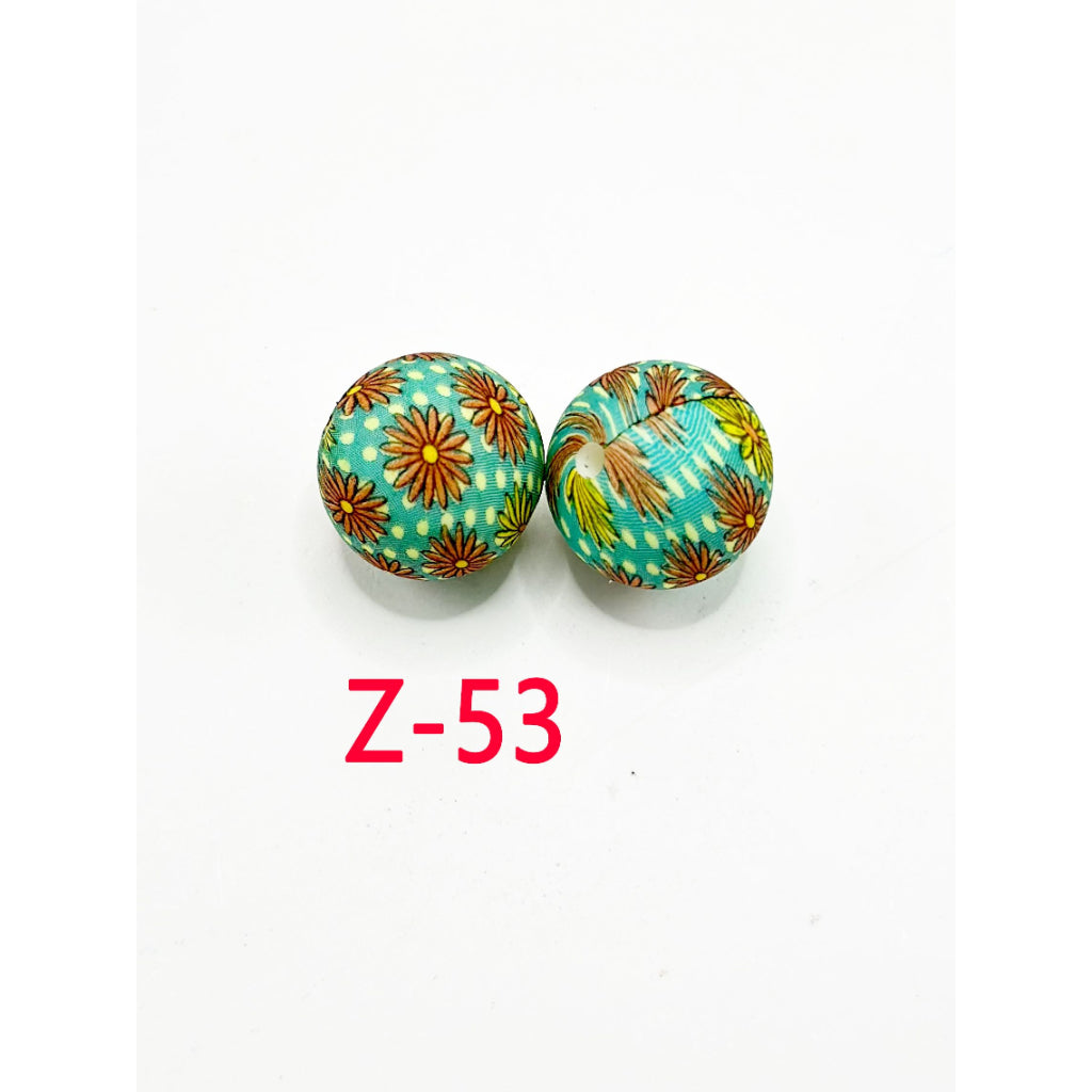 菊の花プリント 丸型プリントシリコンビーズ 15mm 番号 Z-53