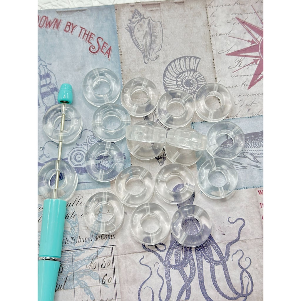 サークルビーズ(クリアリングループアクリルビーズ、サイズ21mm)は、ペンをはじめ、様々なクラフト用途にお使いいただけます。ペン軸やキャップにこれらのビーズを差し込むだけで、ペンのデザインにクリーンでモダンな雰囲気をプラスし、エレガントで個性的な仕上がりを演出できます。ジュエリーデザイン、アクセサリーの装飾、ペンのカスタマイズなど、どんな作品にも、これらの透明アクリルビーズは、あなたの作品をより一層引き立てます。