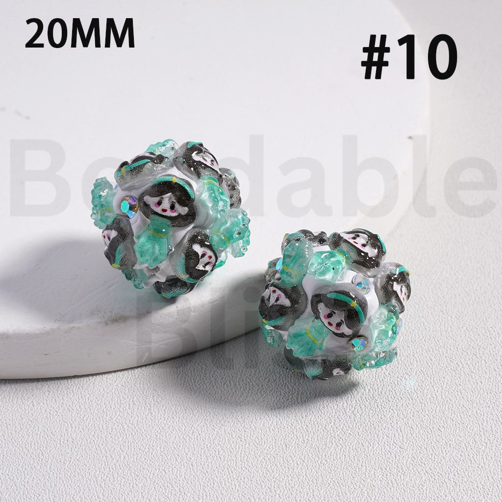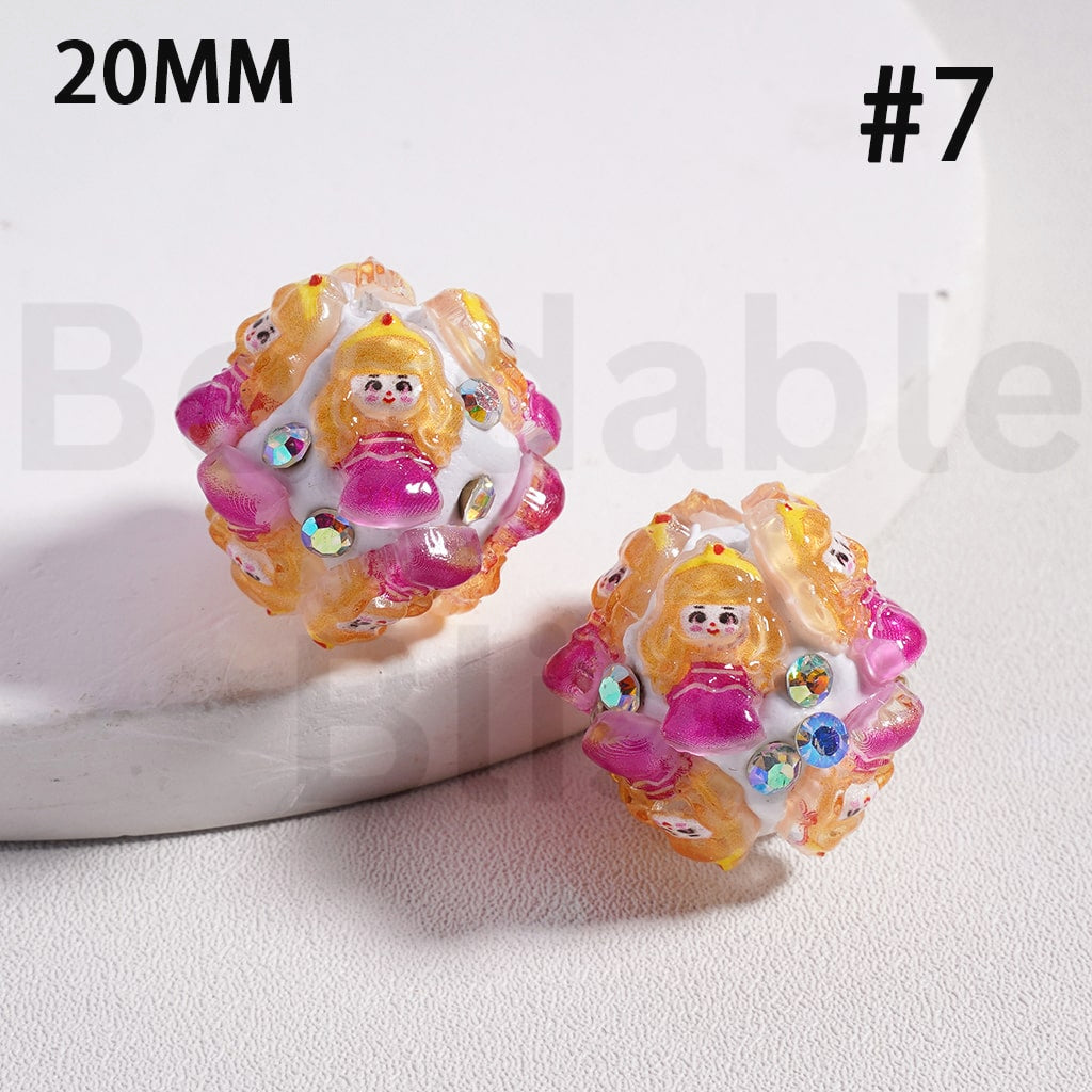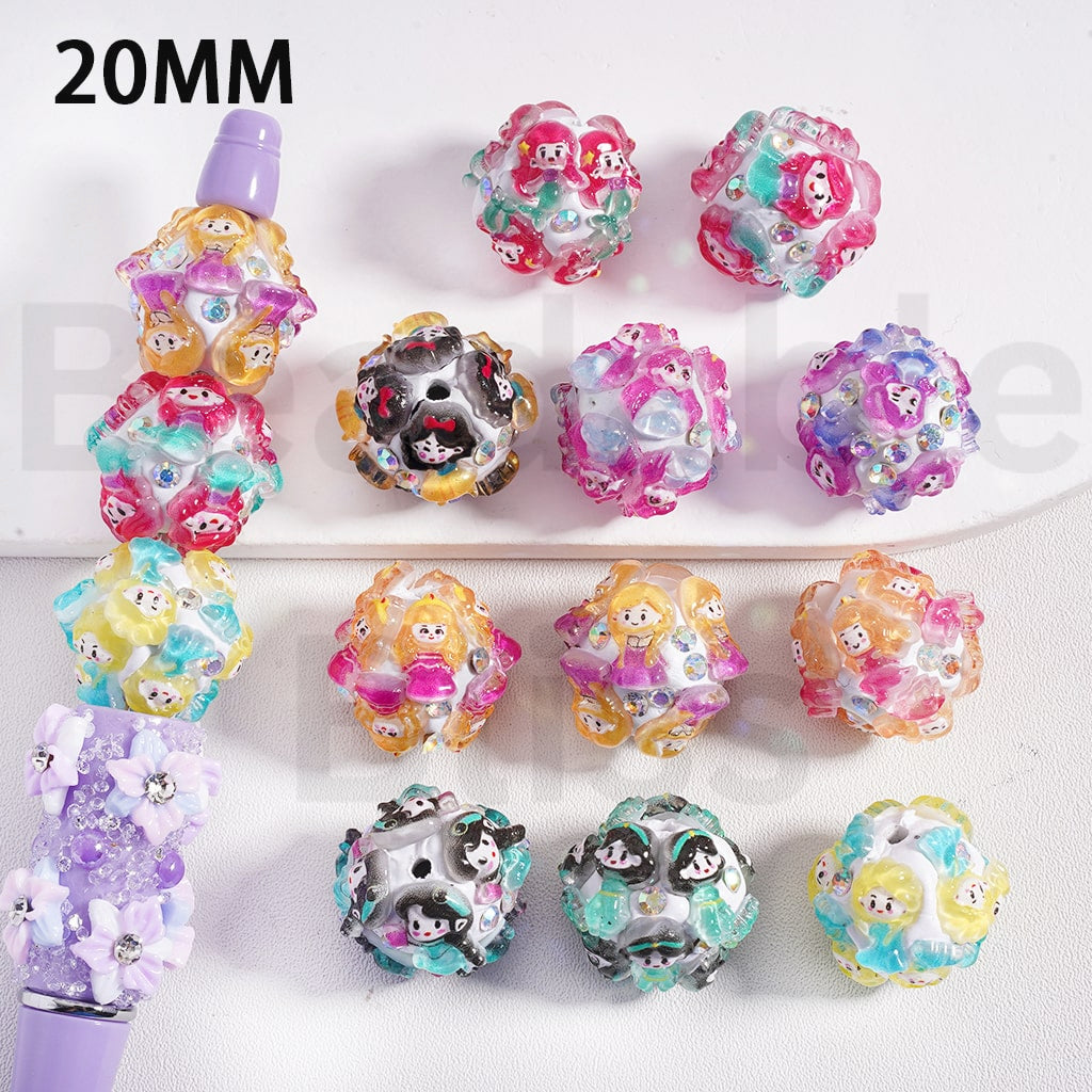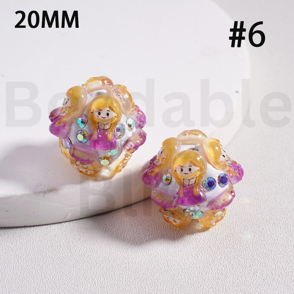 Clay Beads Cute Fantasy Friends Royal Beauty Snow Whit Mermai Tian Rapunze Auror Cinderell Arie with AB Rhinestones, 20MM