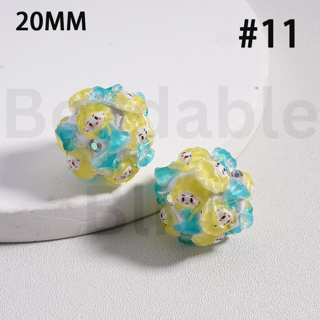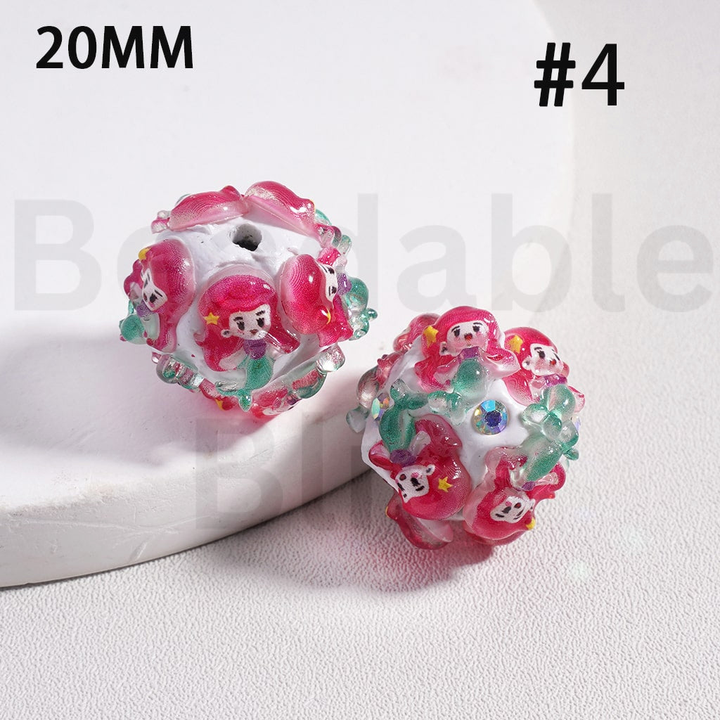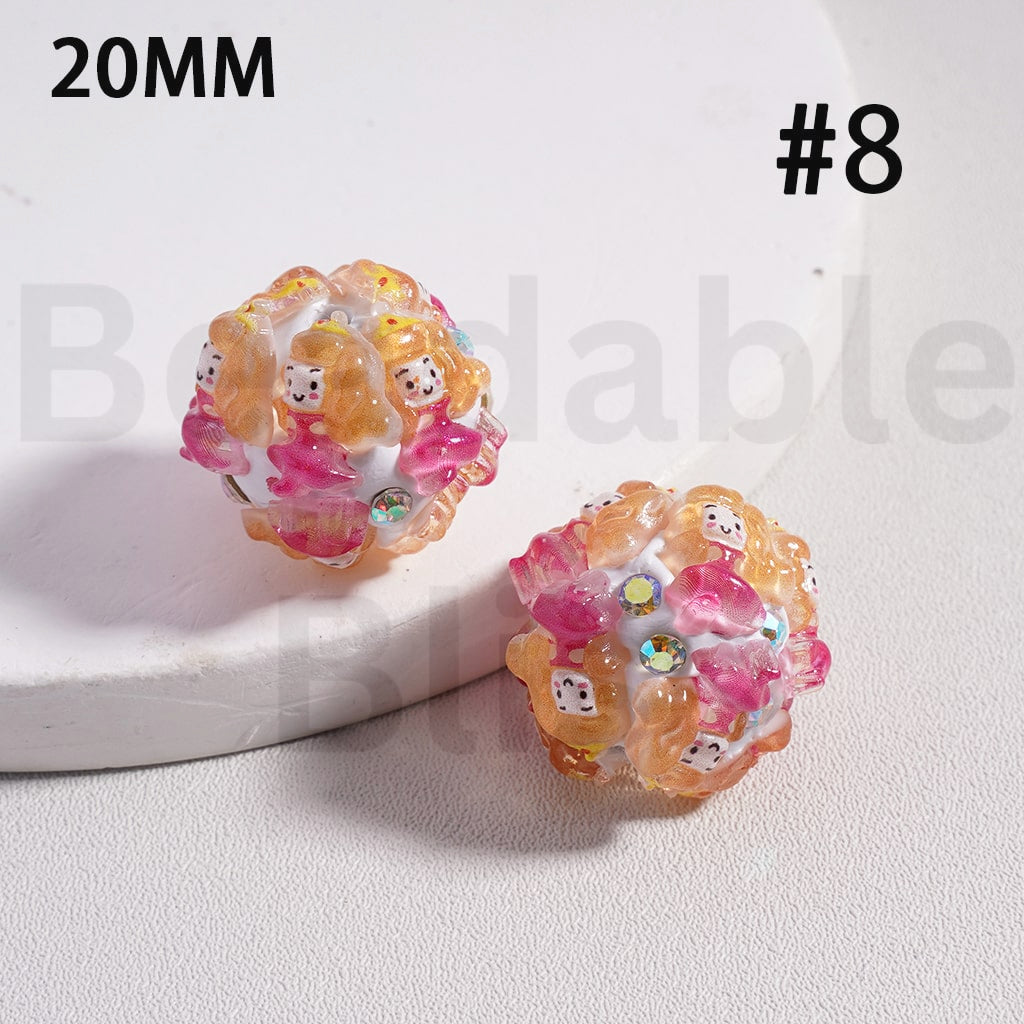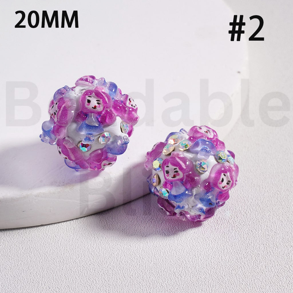 Clay Beads Cute Fantasy Friends Royal Beauty Snow Whit Mermai Tian Rapunze Auror Cinderell Arie with AB Rhinestones, 20MM
