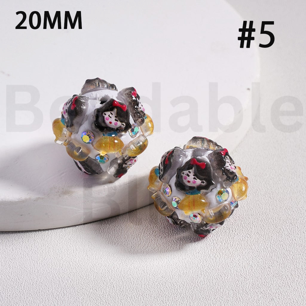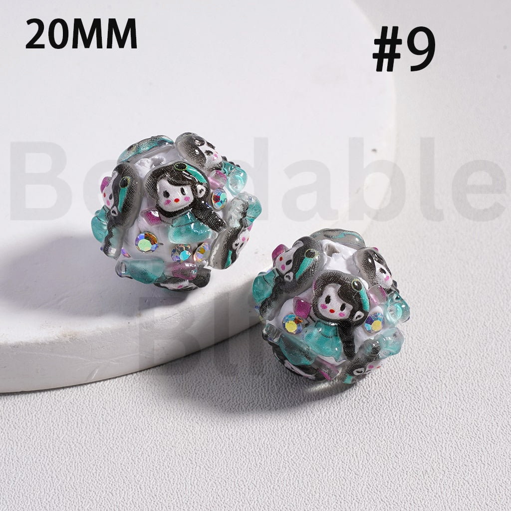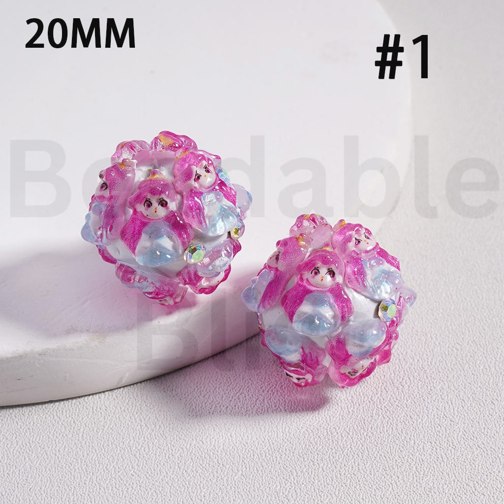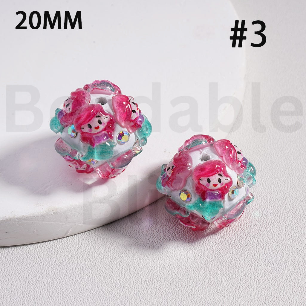 Clay Beads Cute Fantasy Friends Royal Beauty Snow Whit Mermai Tian Rapunze Auror Cinderell Arie with AB Rhinestones, 20MM