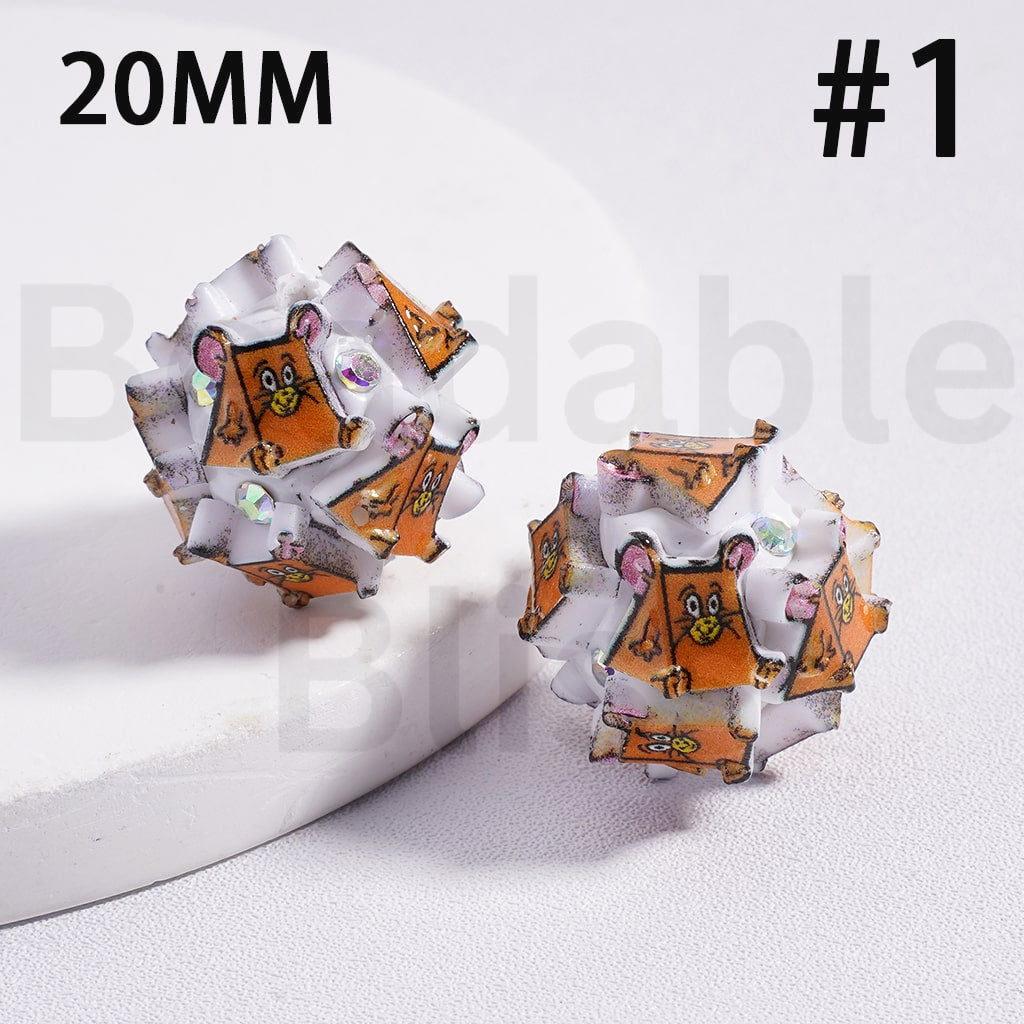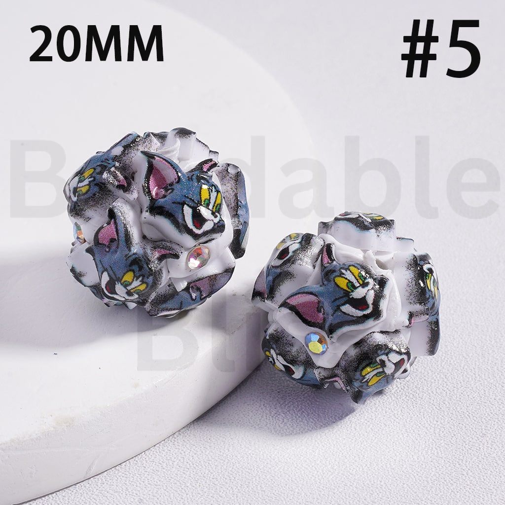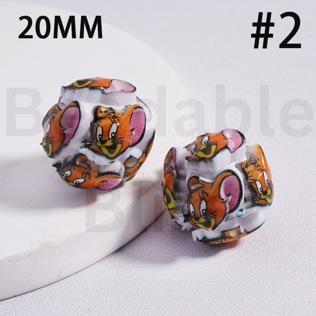 Clay Beads Cute To & Jerr Cat Mouse with AB Rhinestones 20MM