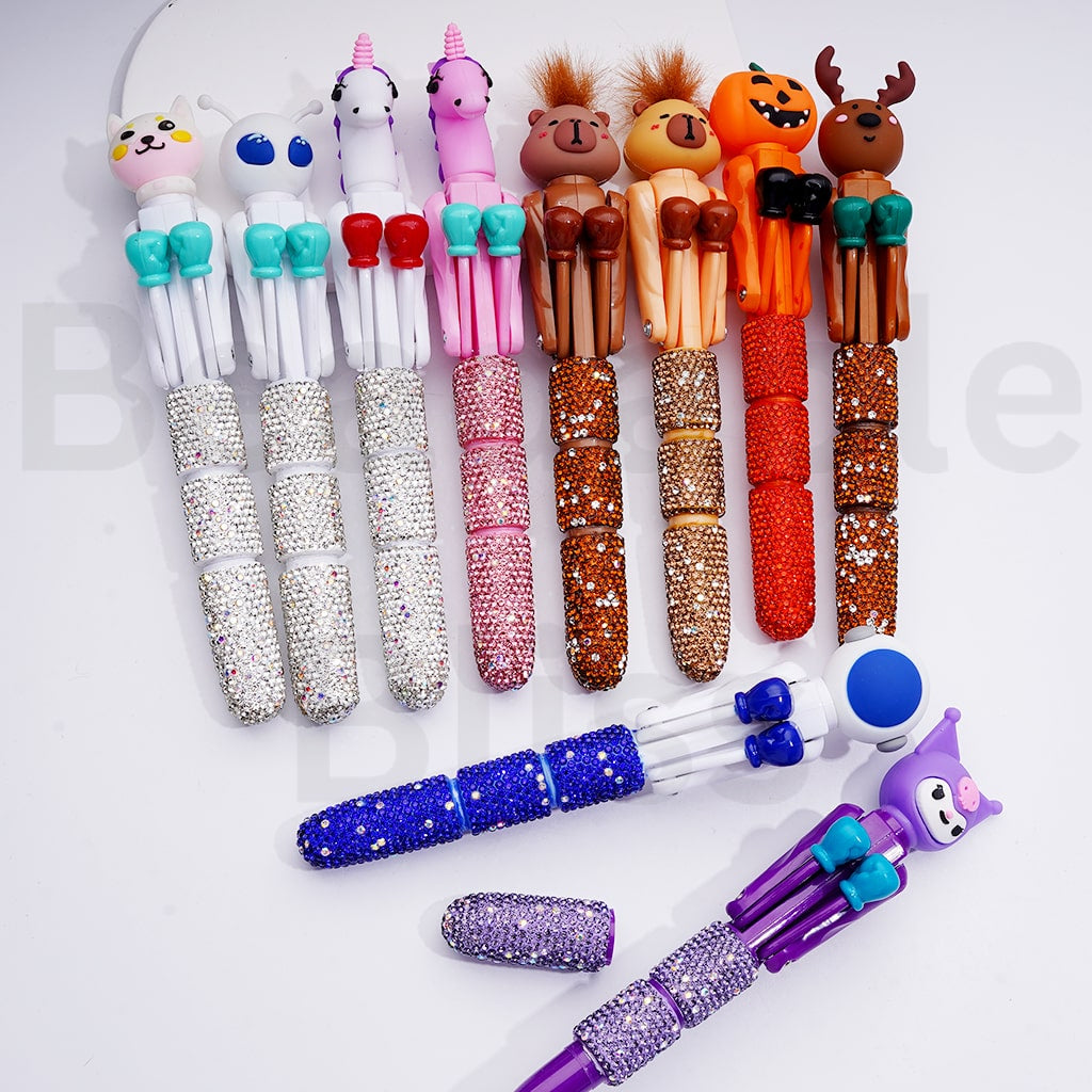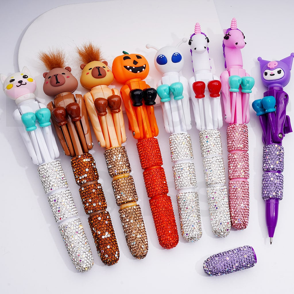 Clay Pens Large Cute Cartoon Kurom Unicor Spine-Chiller Mask Pumpkin Elk Bear Alien Cat Astronaut with Movable Boxing Arms Shiny Rhinestones