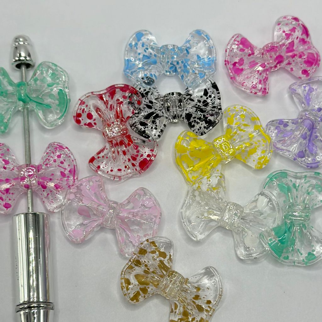 クリアボウタイリボン ボトノット アクリルビーズ ペイント スプラッター スポット スパッター 23*32mm ランダムミックス
