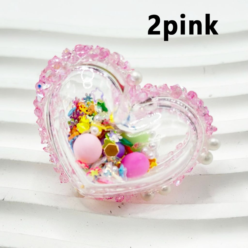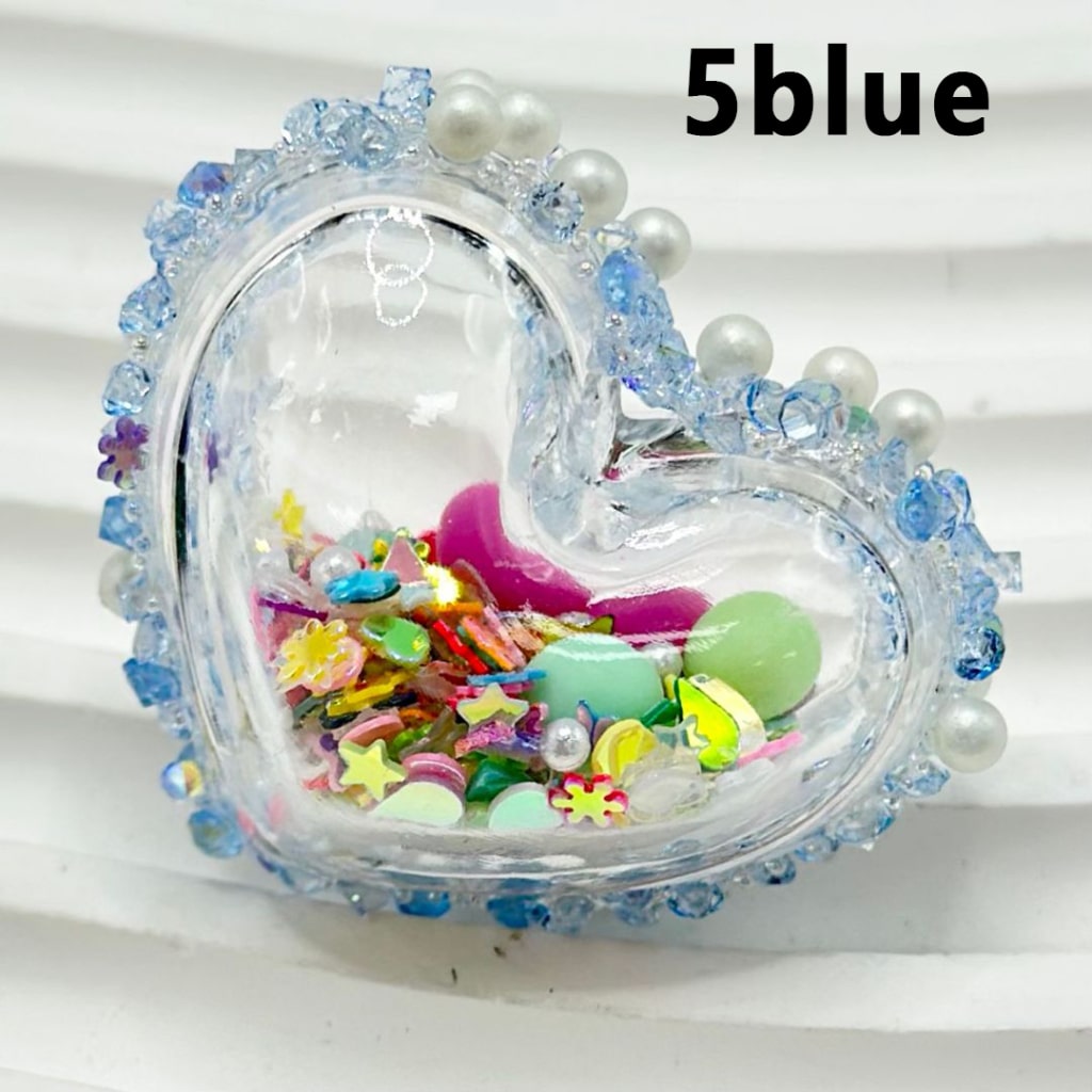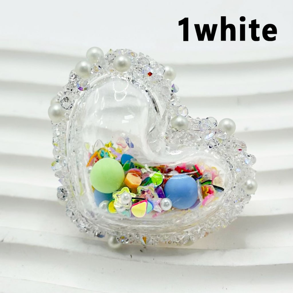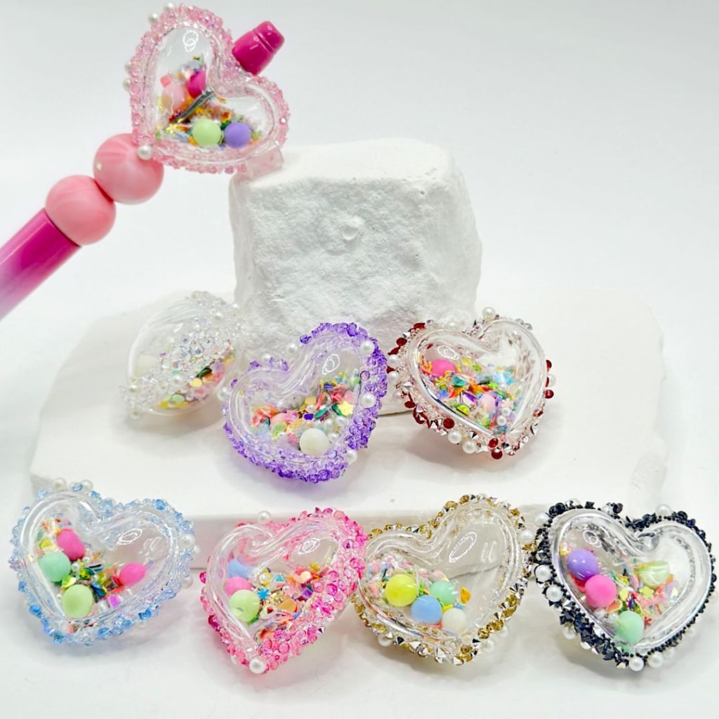 透明な中空ハートシェイクアクリルビーズ、カラフルな紙吹雪フレークスタースノーフレークボールハート、内側にカラフルなラインストーン、シュガーラップホワイトパール、約37×30MM