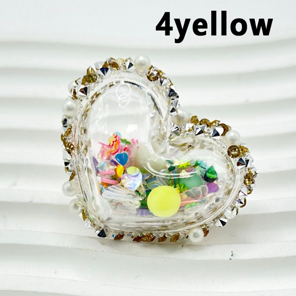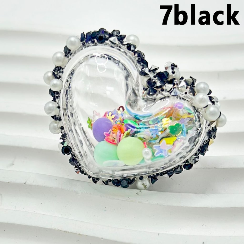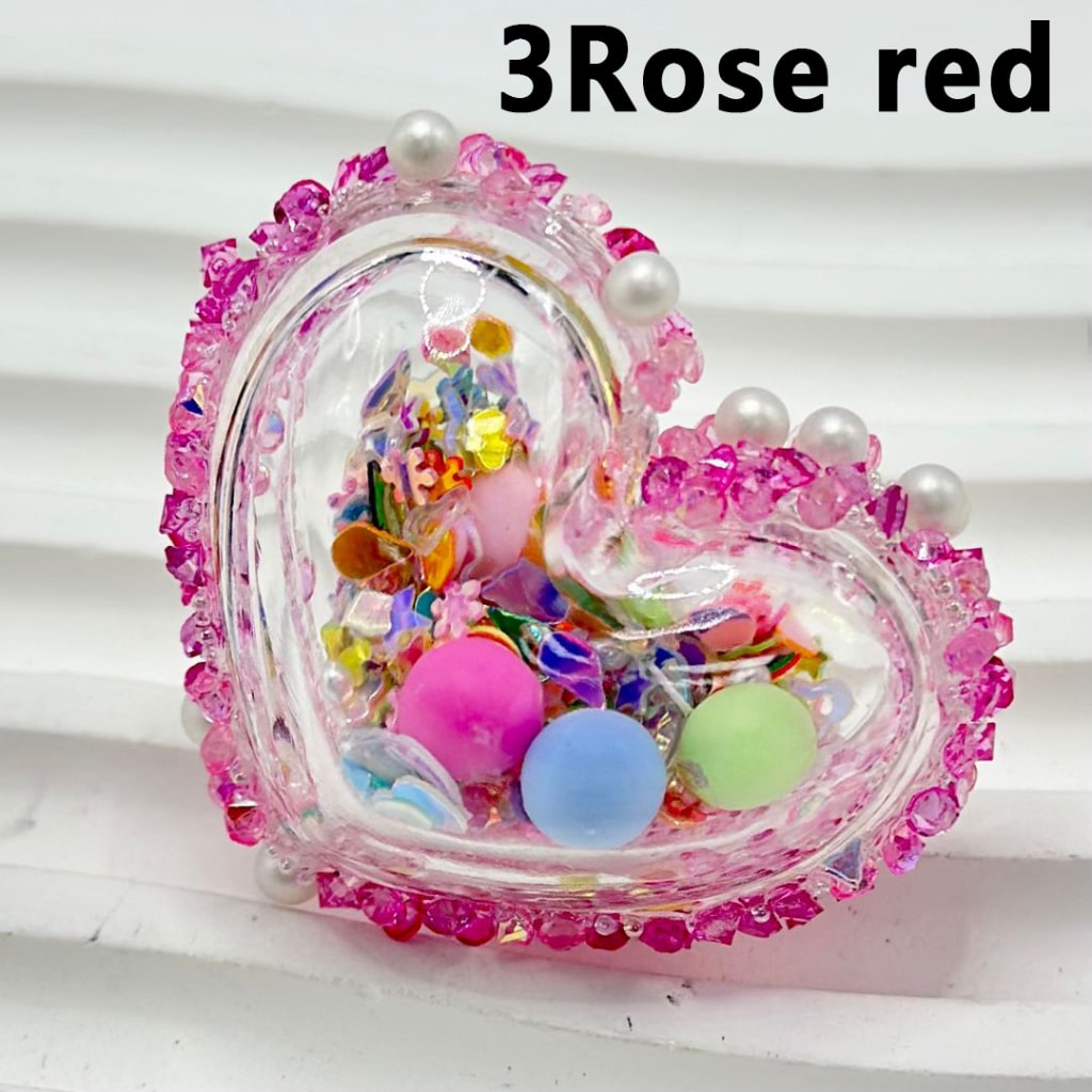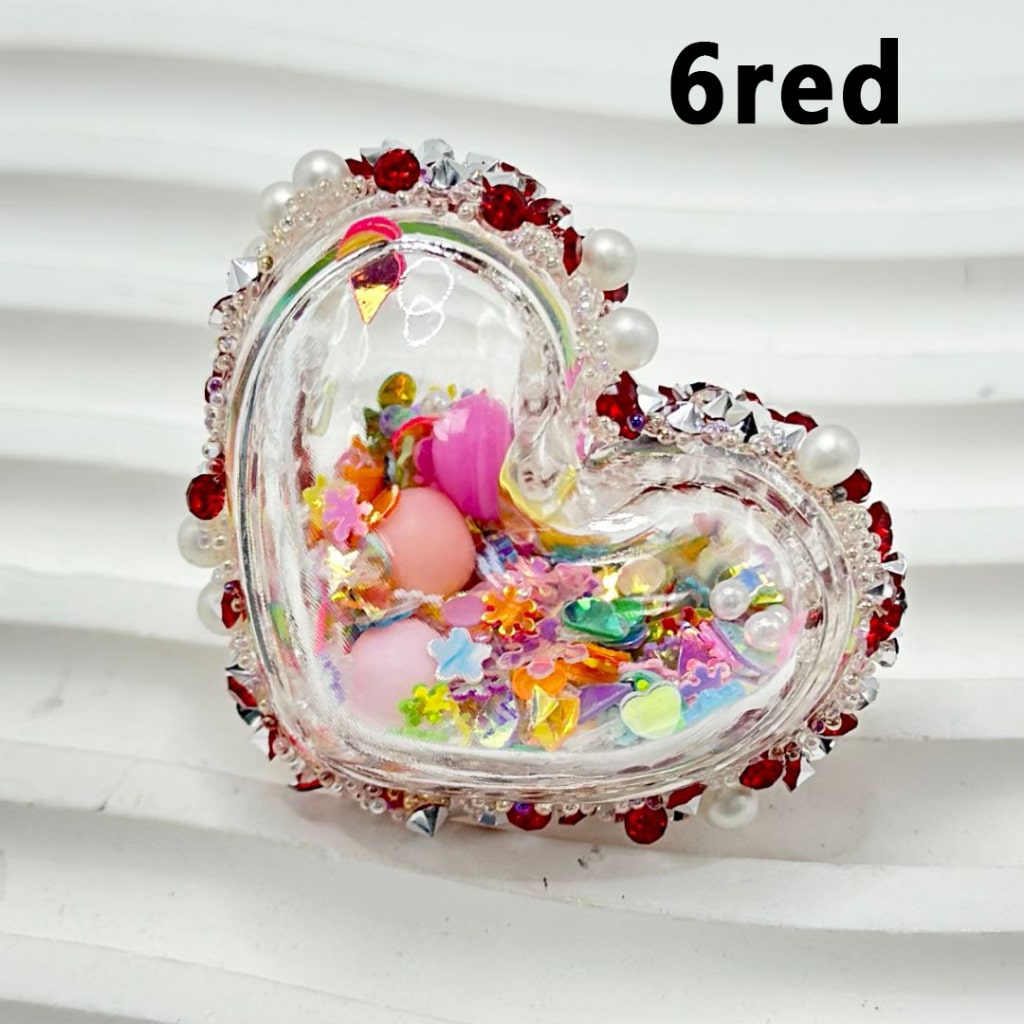 透明な中空ハートシェイクアクリルビーズ、カラフルな紙吹雪フレークスタースノーフレークボールハート、内側にカラフルなラインストーン、シュガーラップホワイトパール、約37×30MM
