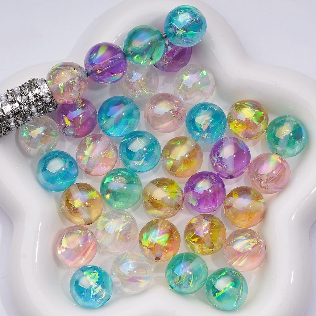 Clear Multi-Color Candy Paper Inside Round Resin Acrylic Beads, 16MM, Random Mix