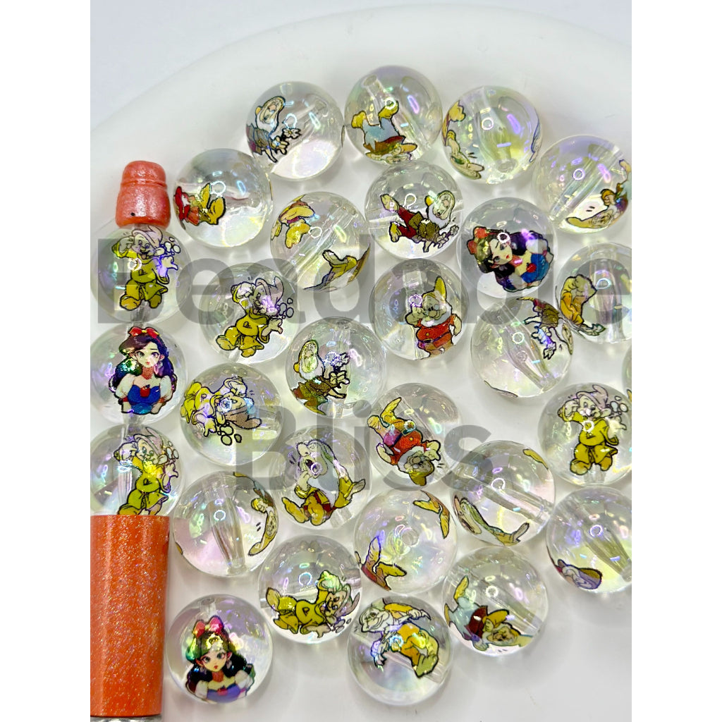 美しいプリンセスとノームの小人柄の透明UVコーティングアクリルビーズ、ランダムミックス、16mm |