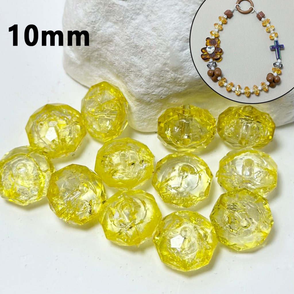 クリアイエローアンバー多面体フラットアクリルビーズ(10mm)