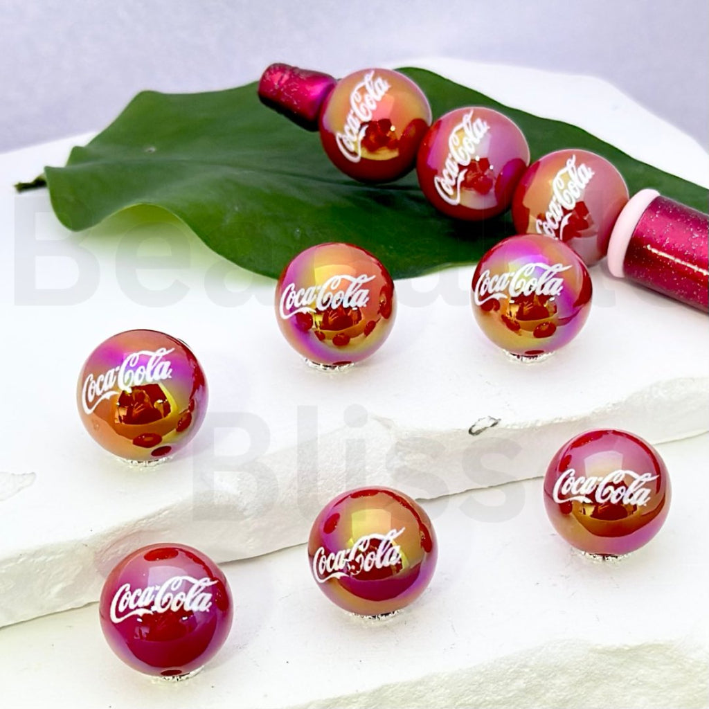 Coc Col コークソーダソフトドリンク レッド ラウンドアクリルビーズ 16MM ランダムミックス