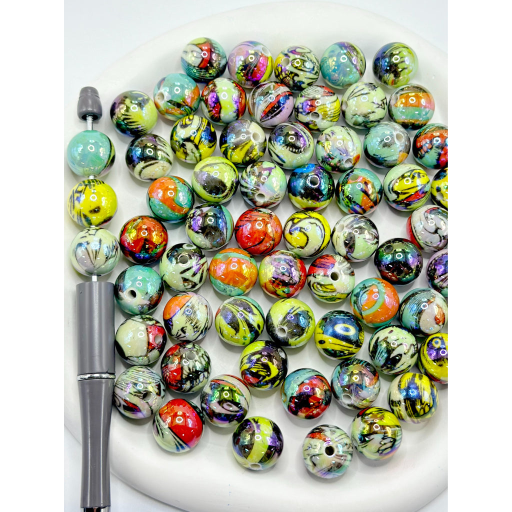カラフルな抽象デザインアクリルビーズ、ランダムミックス、16MM