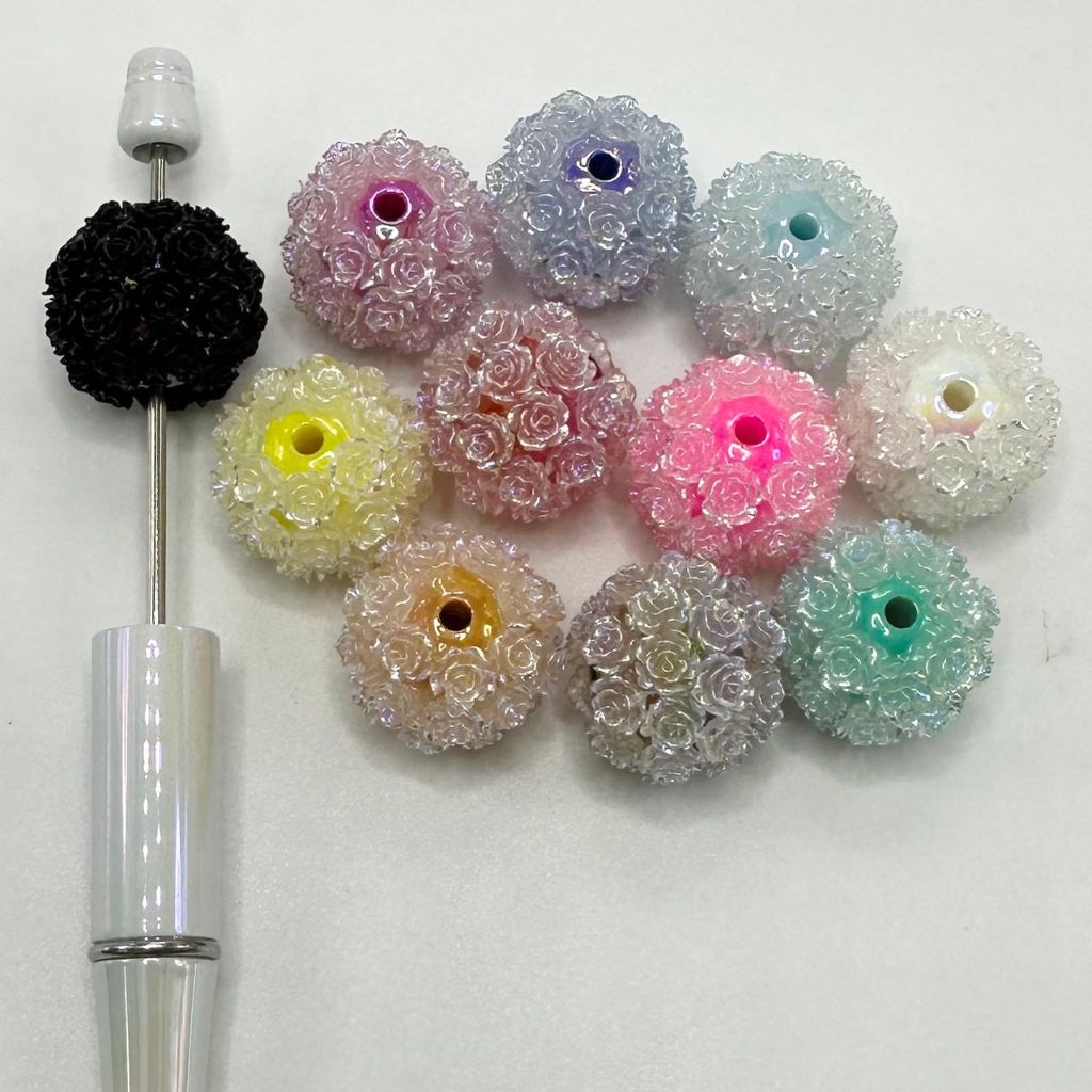 テクスチャー加工された花のカラフルなアクリルビーズ、鮮やかな色、20mm