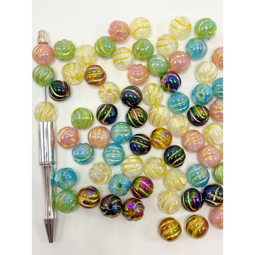 カラフルなアクリル製パンプキンビーズ、ゴールドストライプ、ランダムミックスカラー、YY