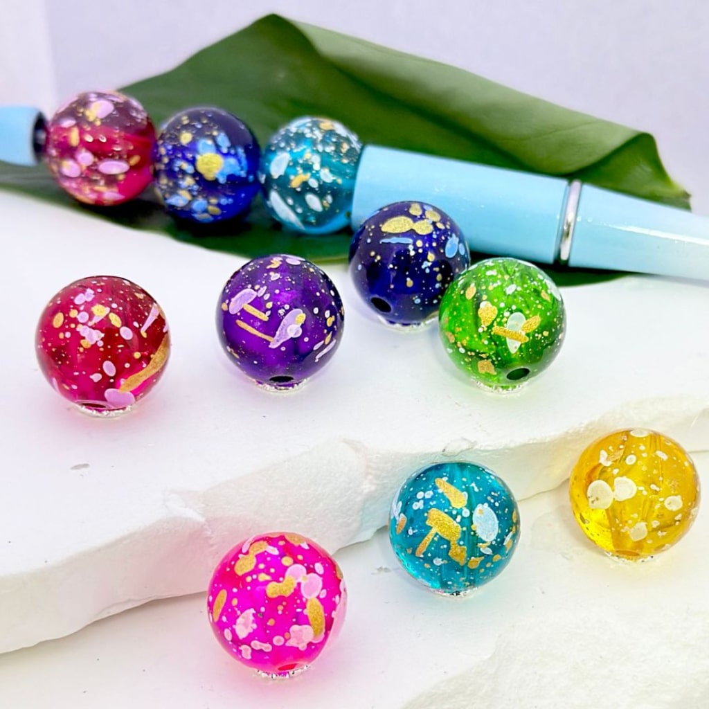 カラフルな透明丸型アクリルビーズ、不規則な斑点のグラフィティ、16mm、ランダムミックス