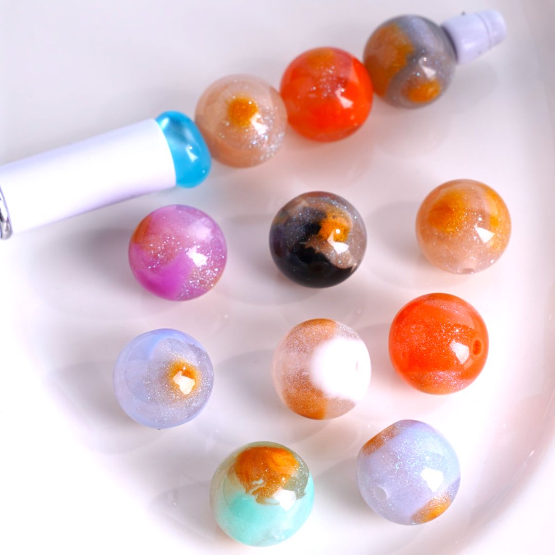 カラフルなキラキラ星雲ラウンドアクリルビーズ、16MM、説明をお読みください