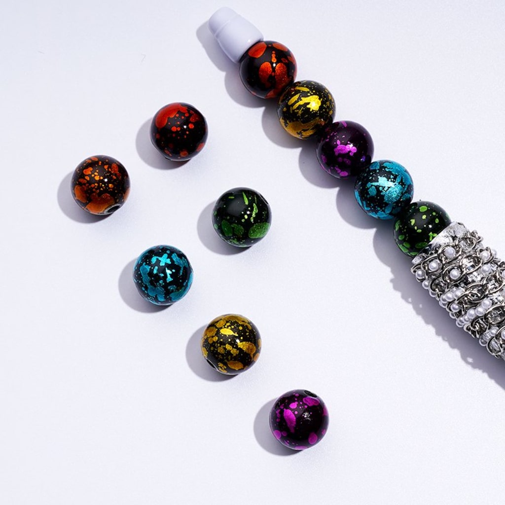 カラフルなグラフィティスポット ブラック ラウンド アクリルビーズ ランダムミックス 12mm