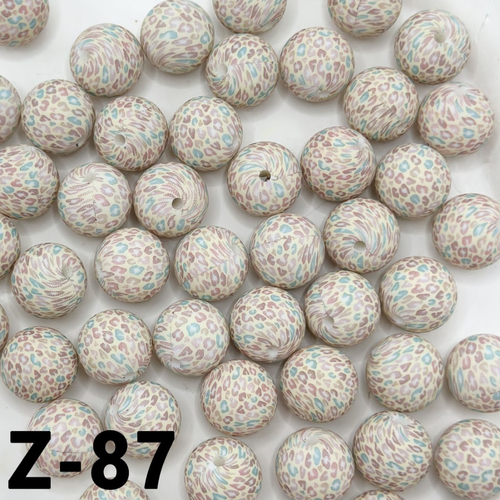 カラフルなジャガーヒョウ柄の丸型プリントシリコンビーズ 15mm、番号 Z-87