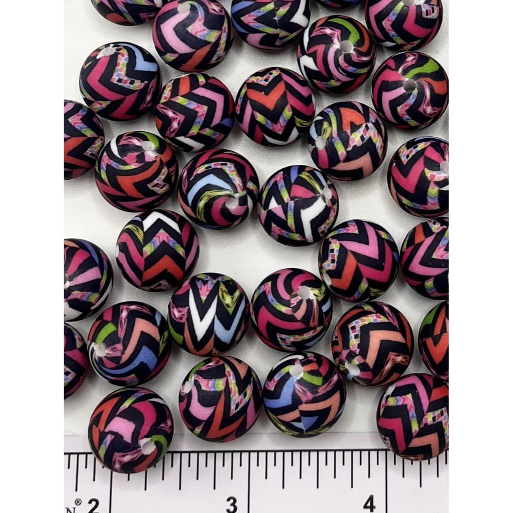 カラフルな模様がプリントされたシリコンビーズ 番号 72