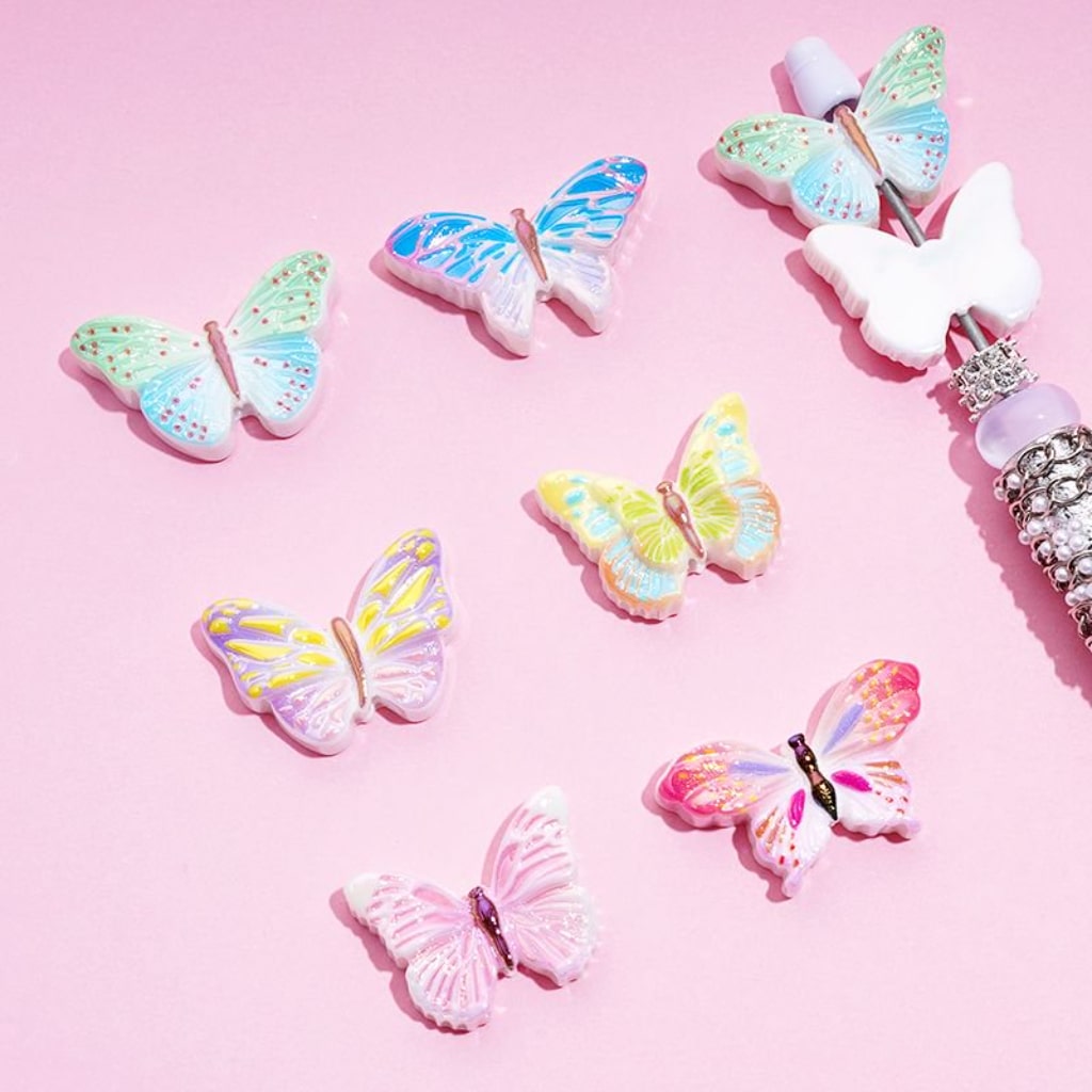 カラフルな光沢のある蝶のアクリルビーズ、約28×22mm、ランダムミックス