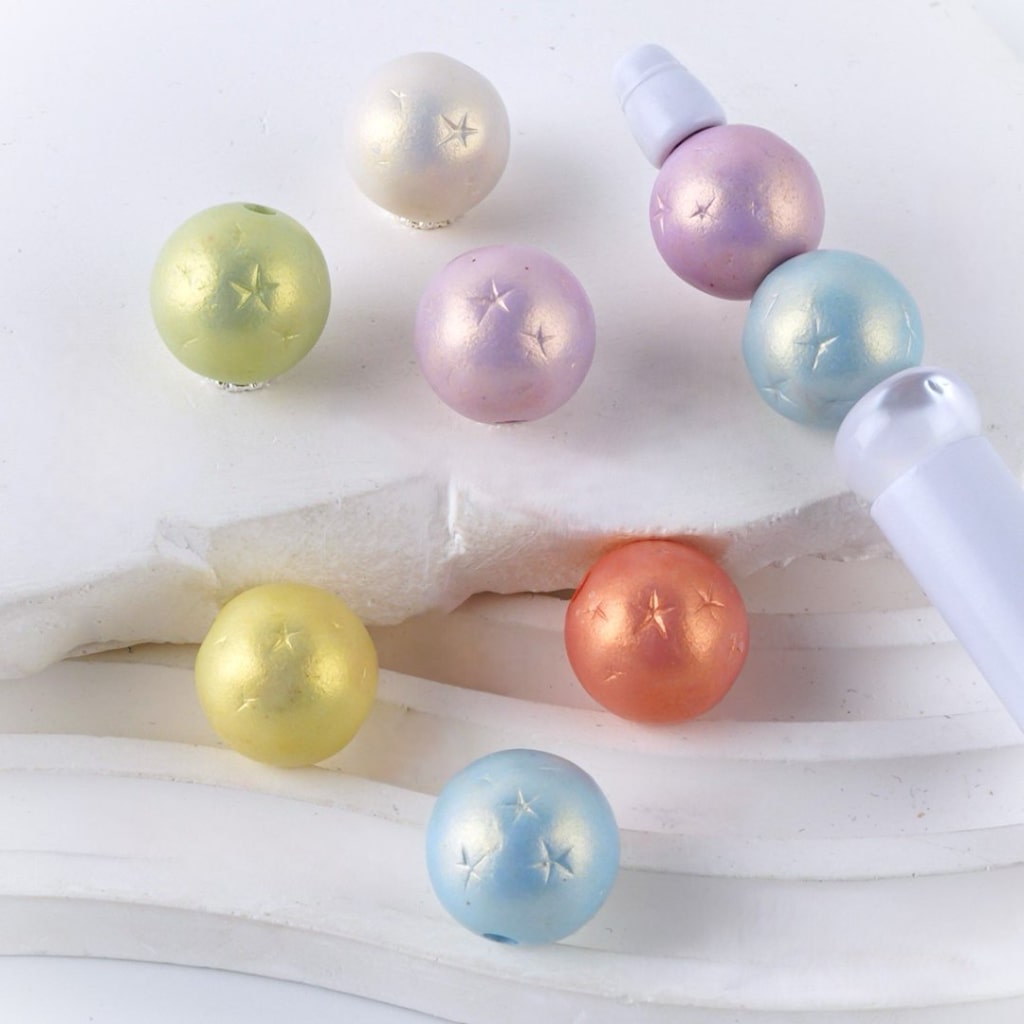 カラフルで光沢のある彫刻された星の丸いアクリルビーズ、16MM、ランダムミックス